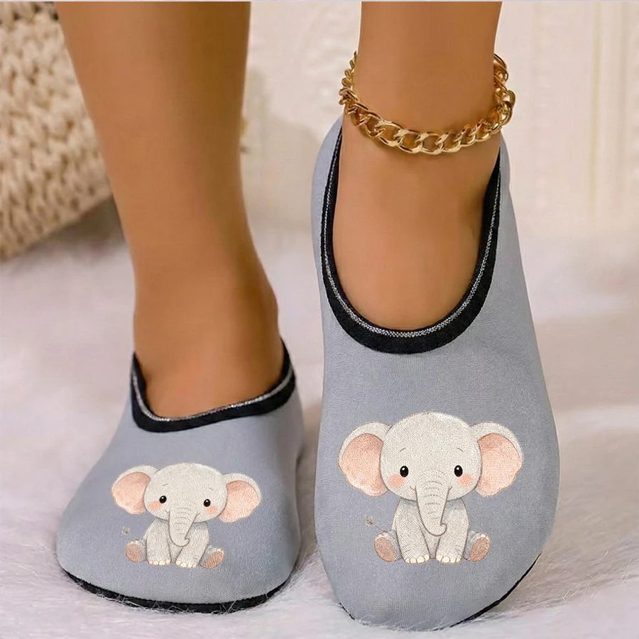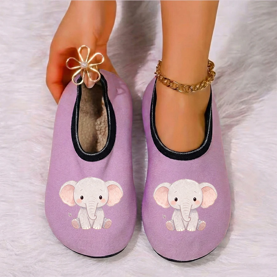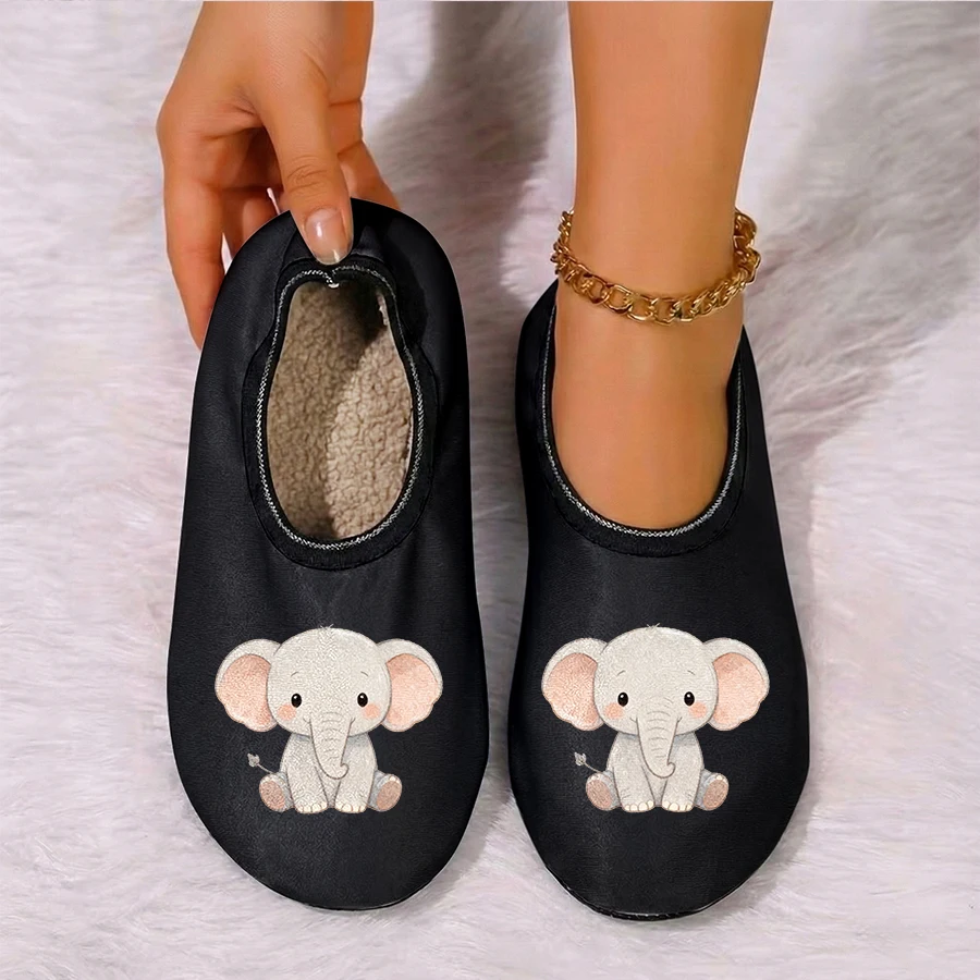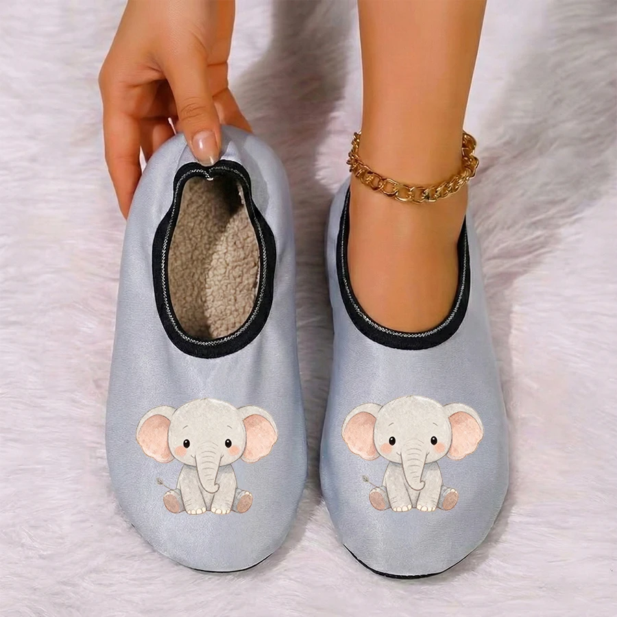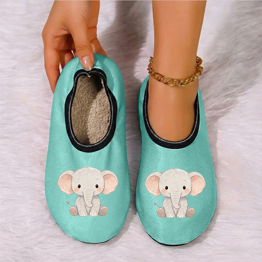 Four season wearable animal elephant print with thin fleece, breathable, high elasticity, non slip flooring, couple slippers