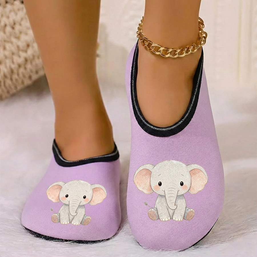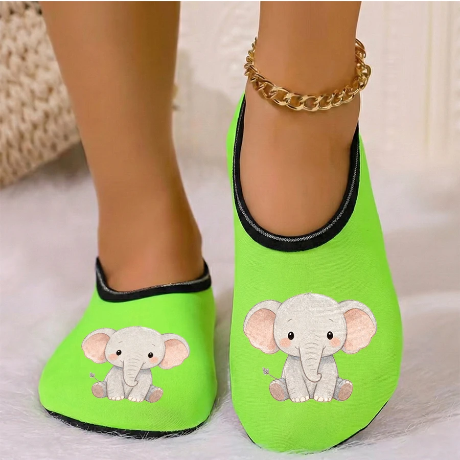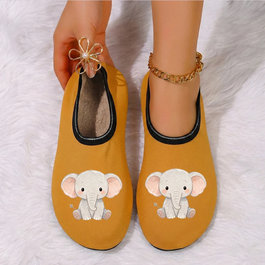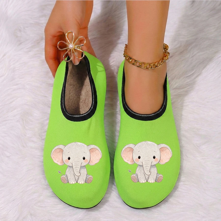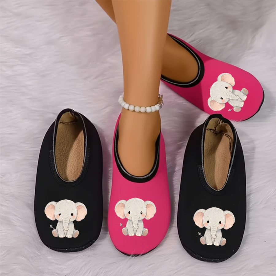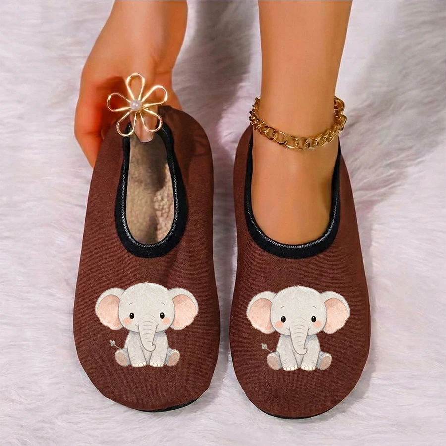 Four season wearable animal elephant print with thin fleece, breathable, high elasticity, non slip flooring, couple slippers