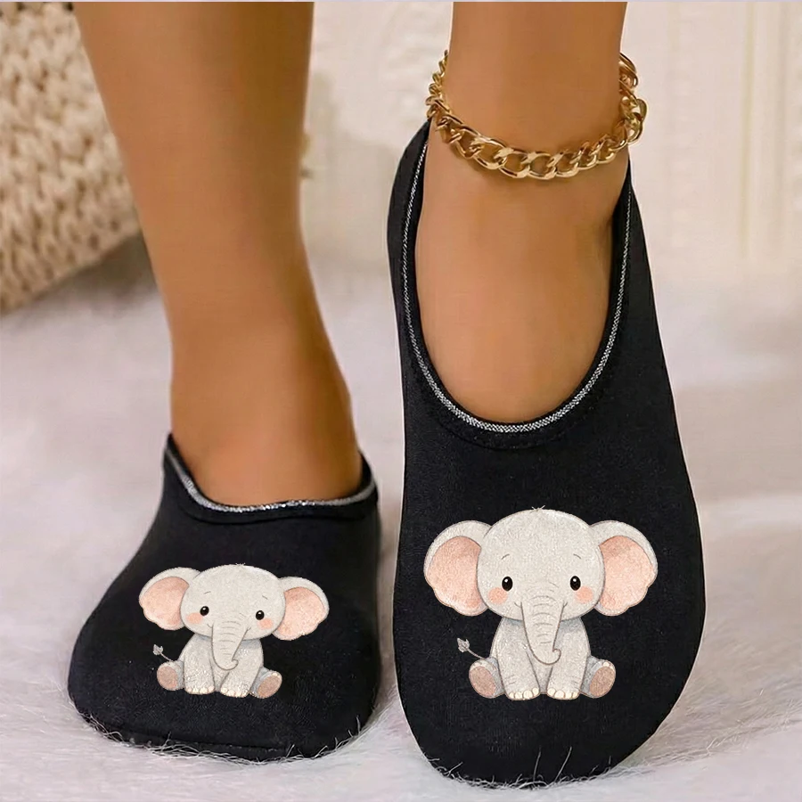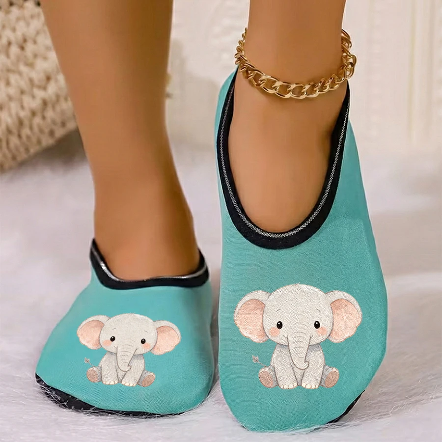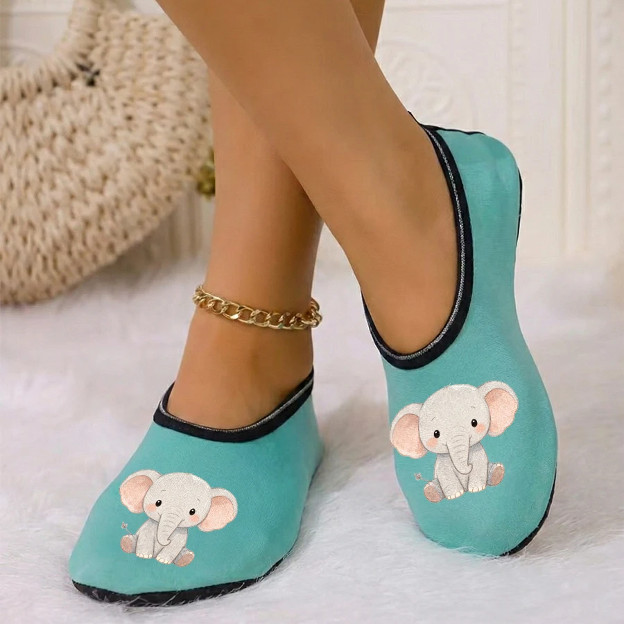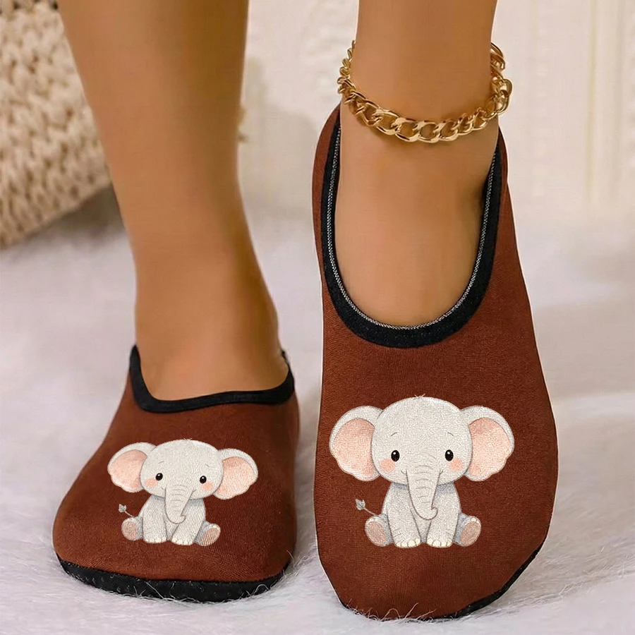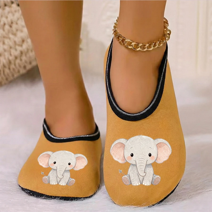 Four season wearable animal elephant print with thin fleece, breathable, high elasticity, non slip flooring, couple slippers
