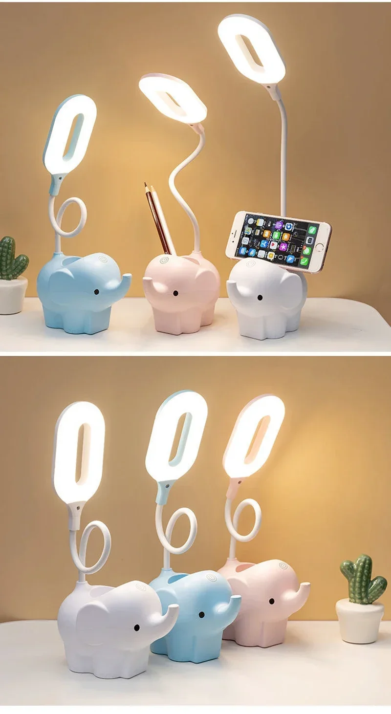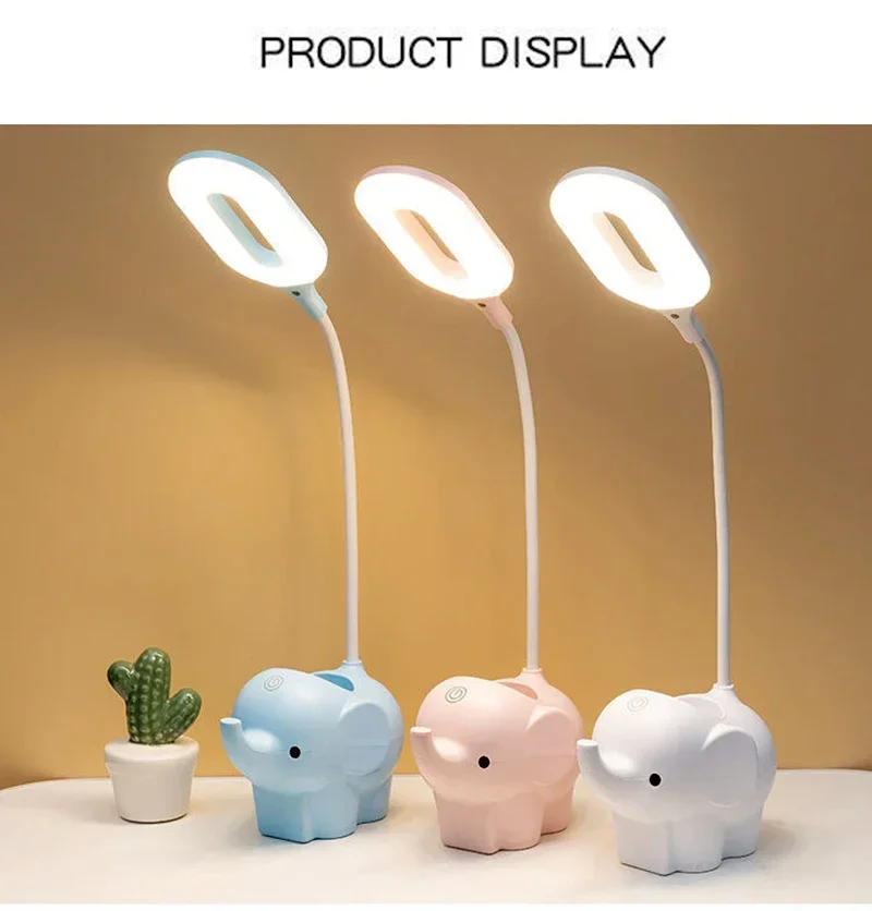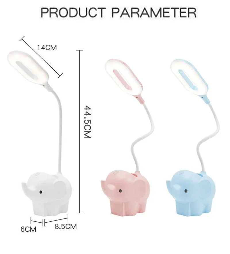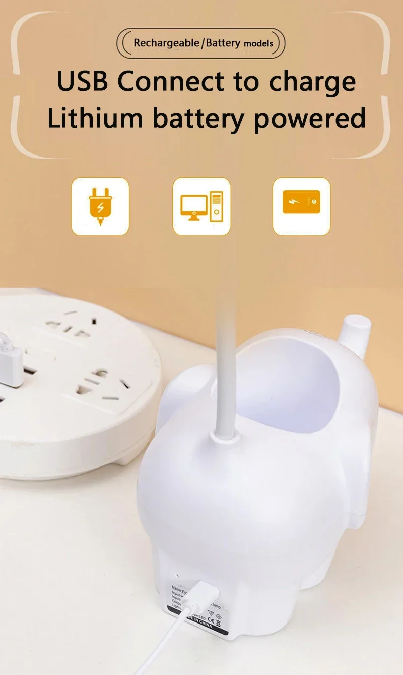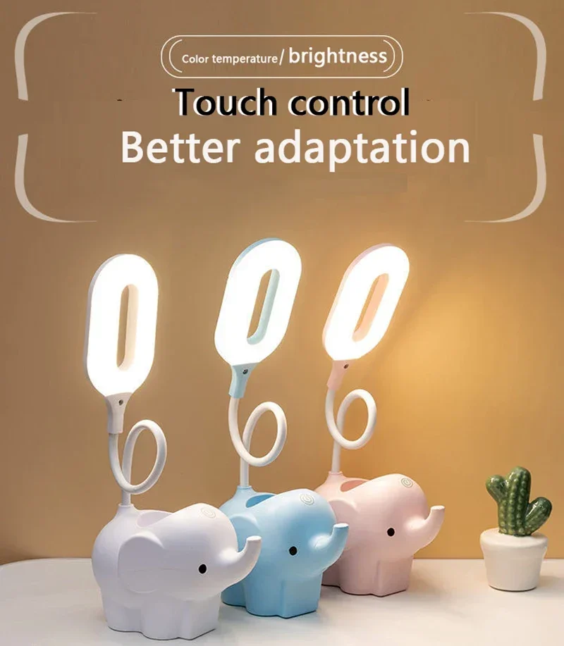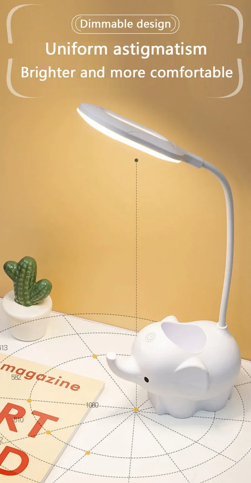 Cartoon Elephant Desk Lamp Eye Protection Student Table Light With Touch Control USB Rechargeable Desktop Night Lights