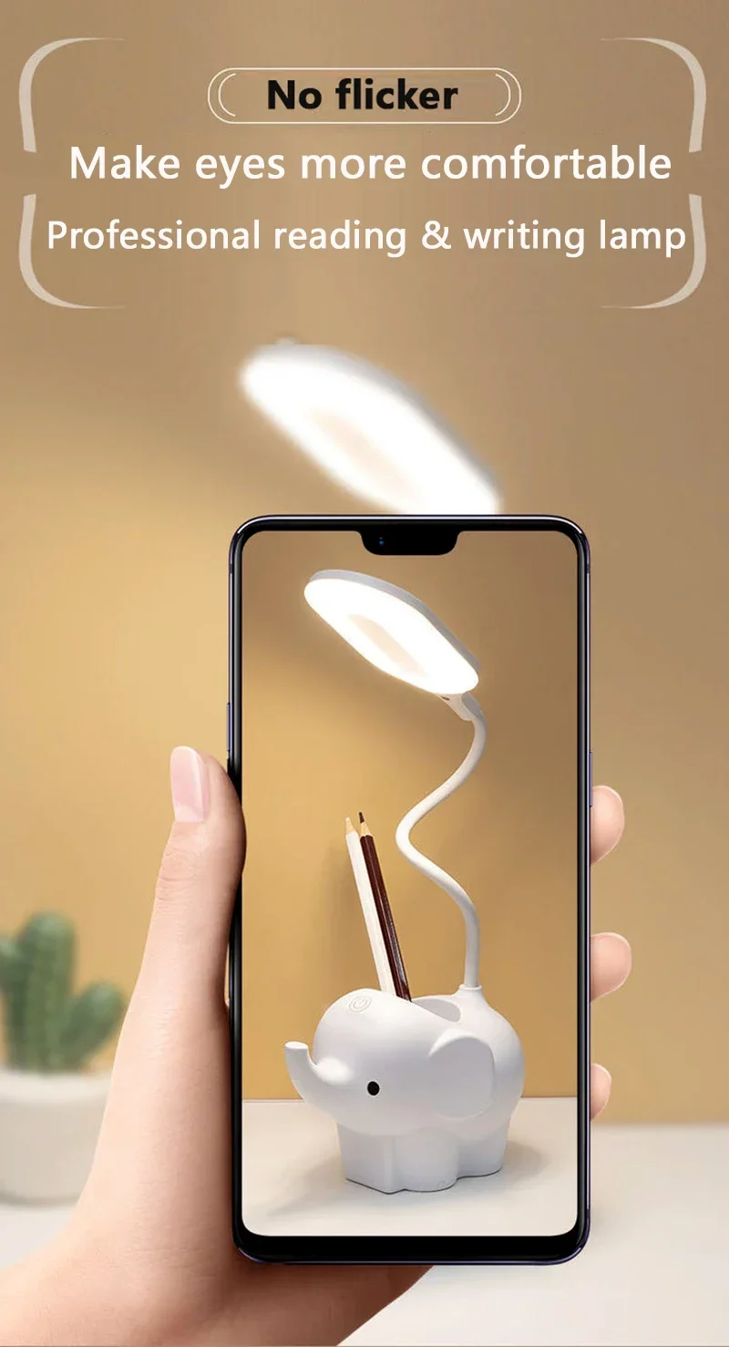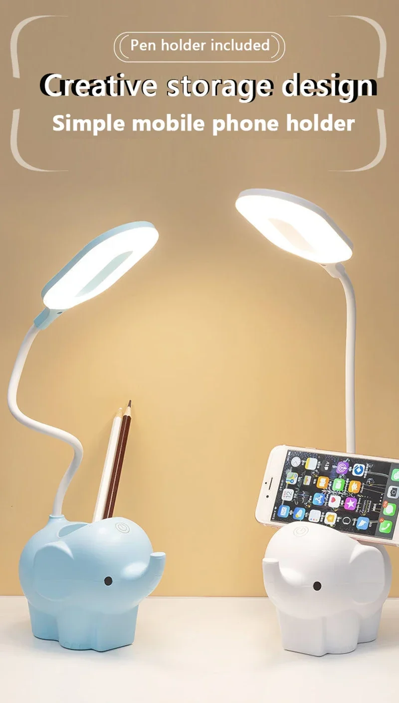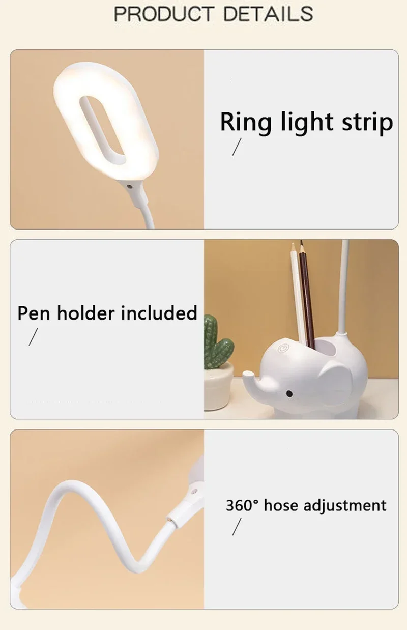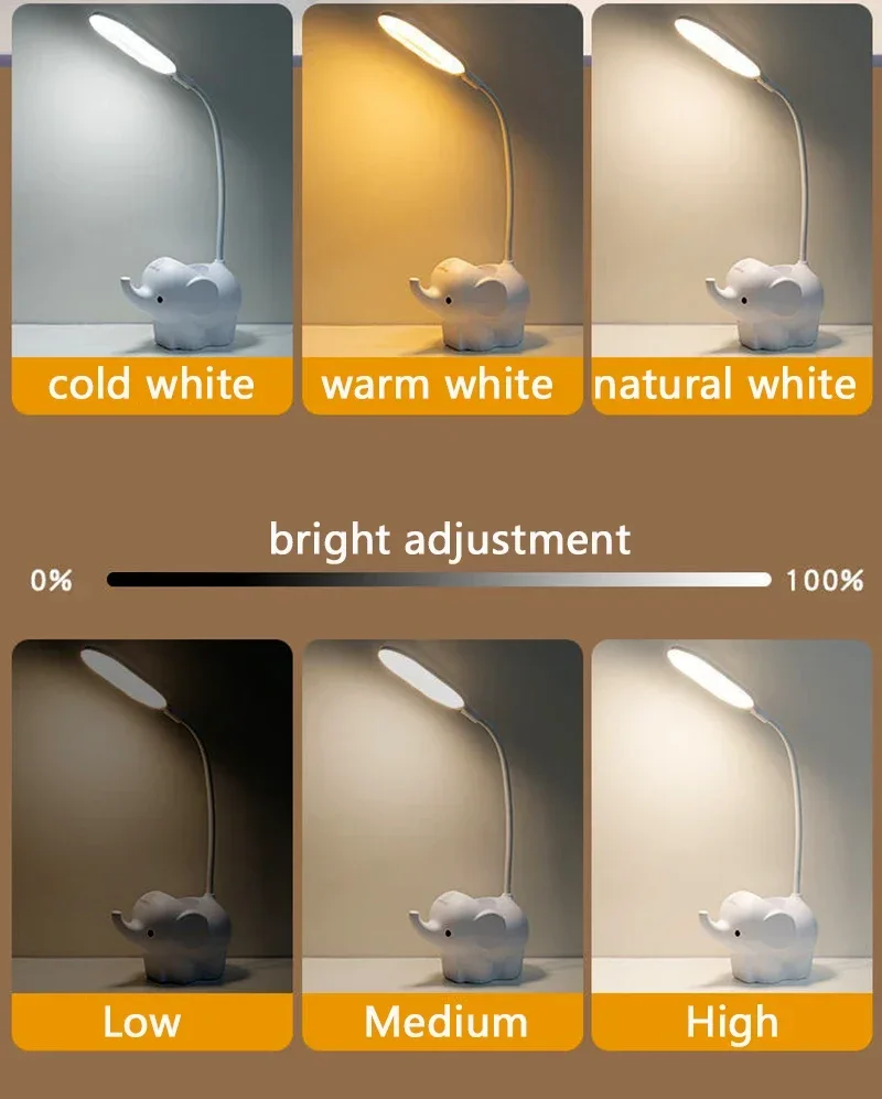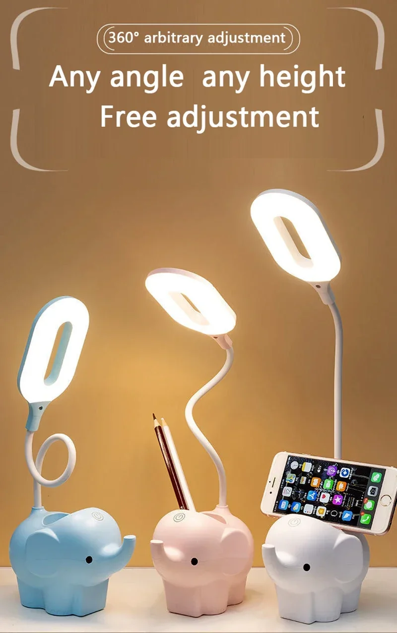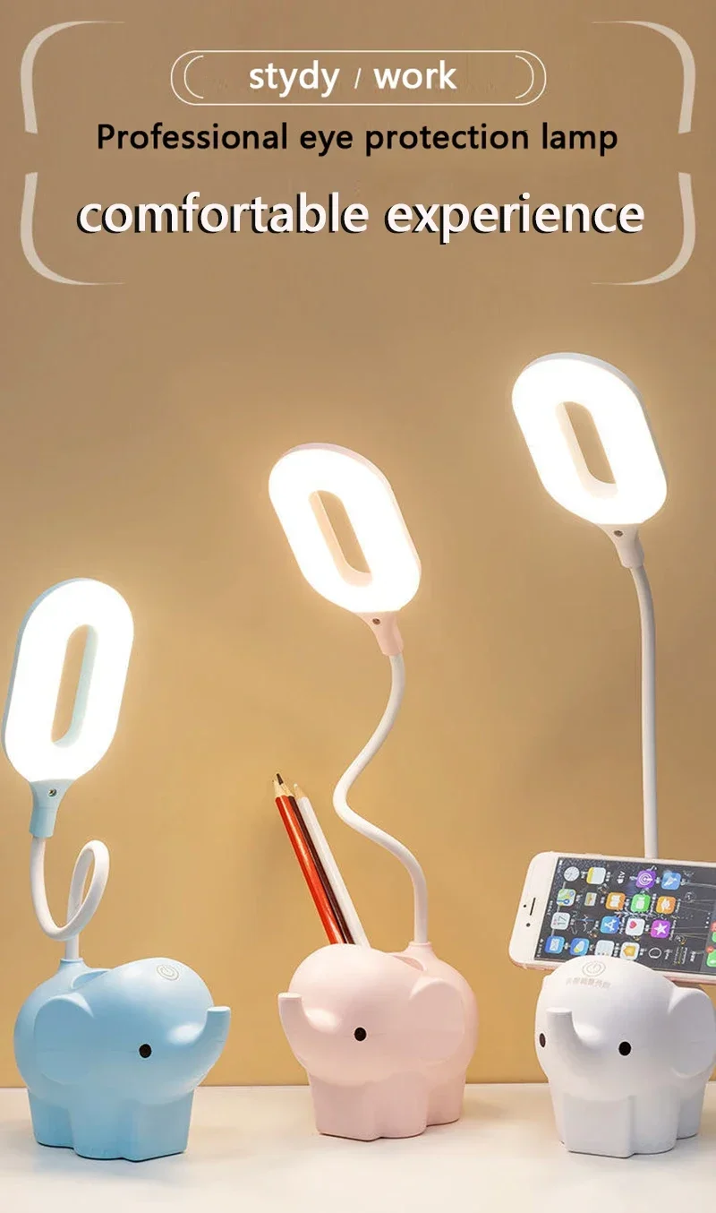 Cartoon Elephant Desk Lamp Eye Protection Student Table Light With Touch Control USB Rechargeable Desktop Night Lights