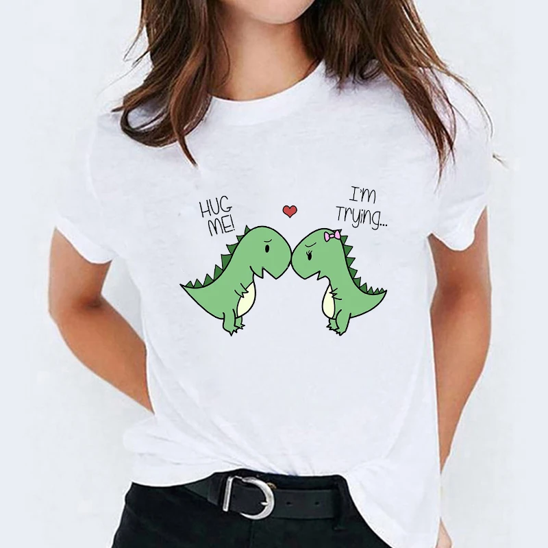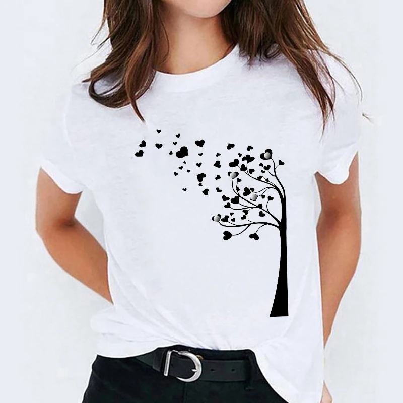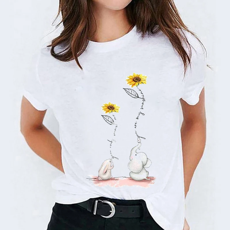 Graphic T Shirt for Women Elephant Love Cartoon Fashion Printing Print Lady T-shirts Top Womens Ladies Travel Tee T-Shirt