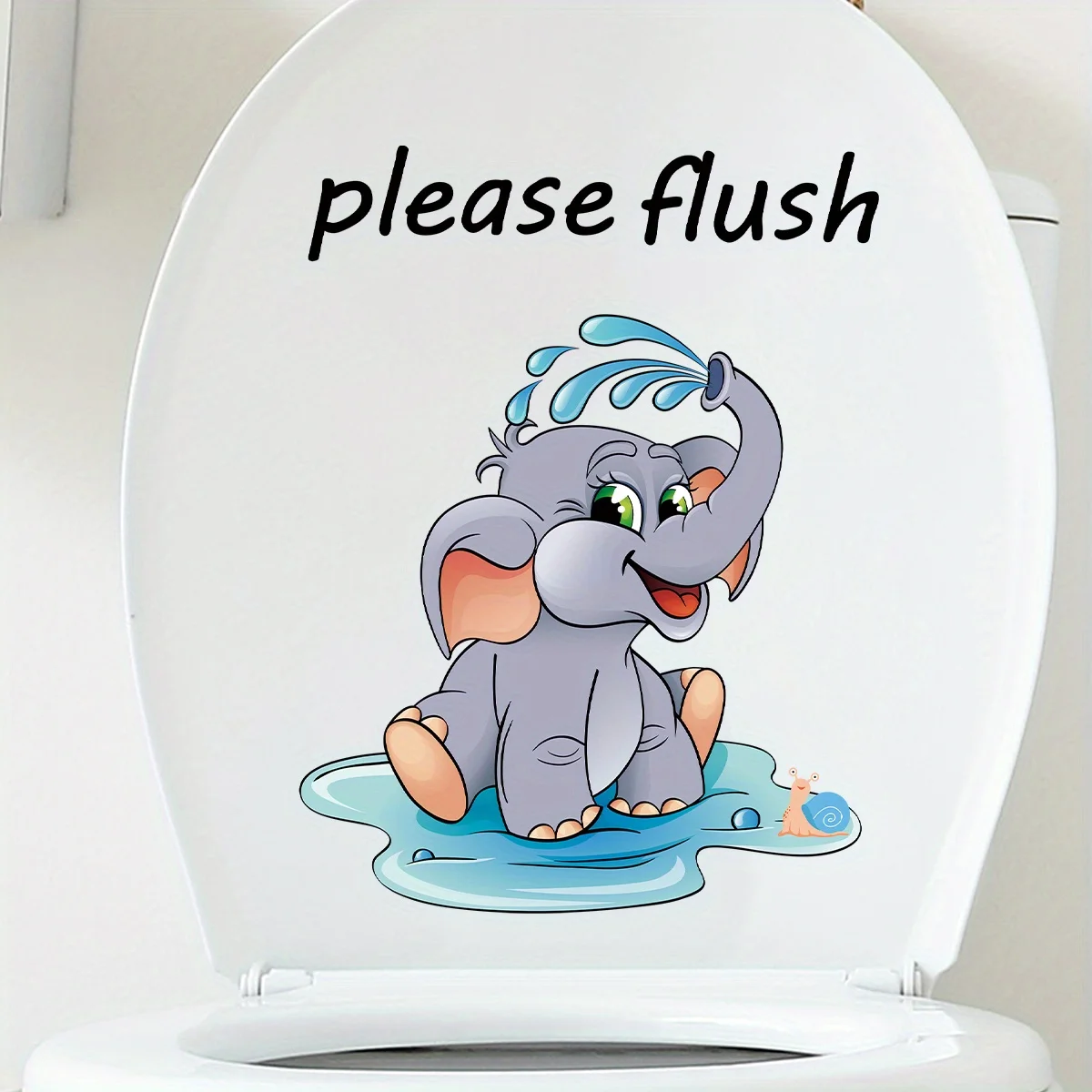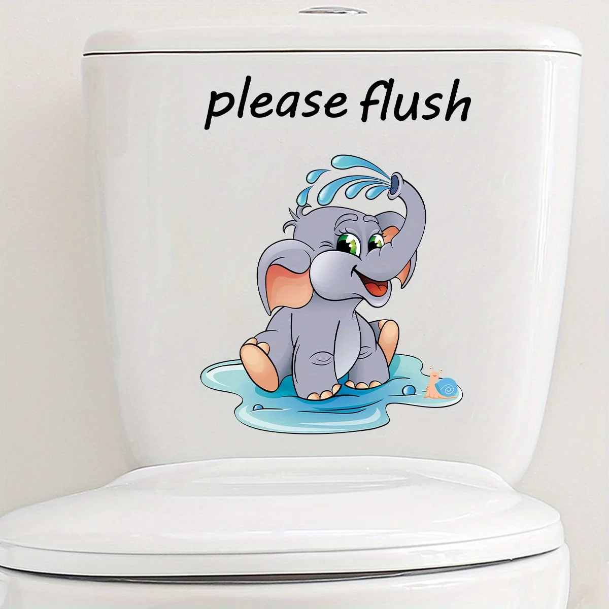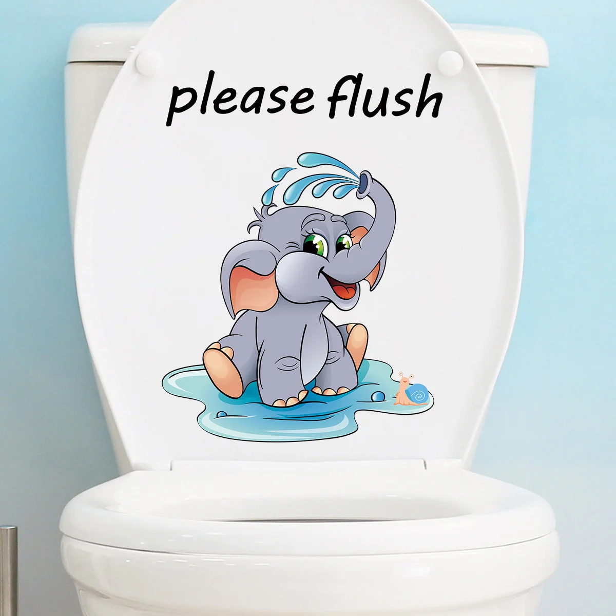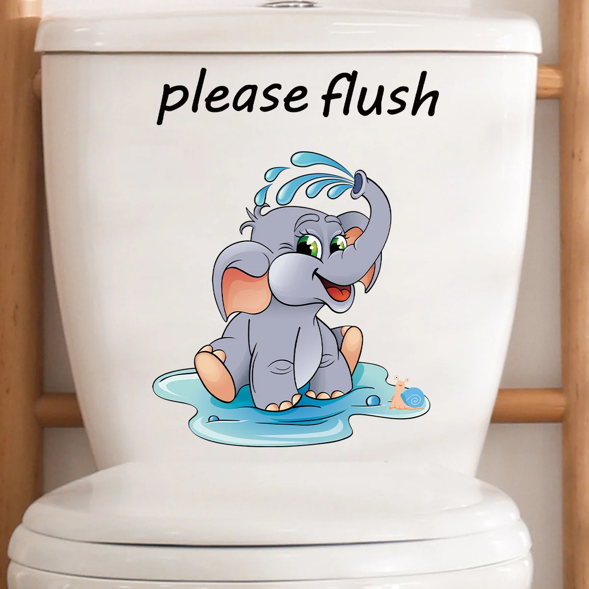 Cartoon Cute Elephant Playing in Waterproof 'please Flush'toilet Stickers for Bedroom Living Room Nursery Decoration Wall Decals