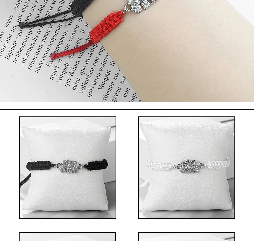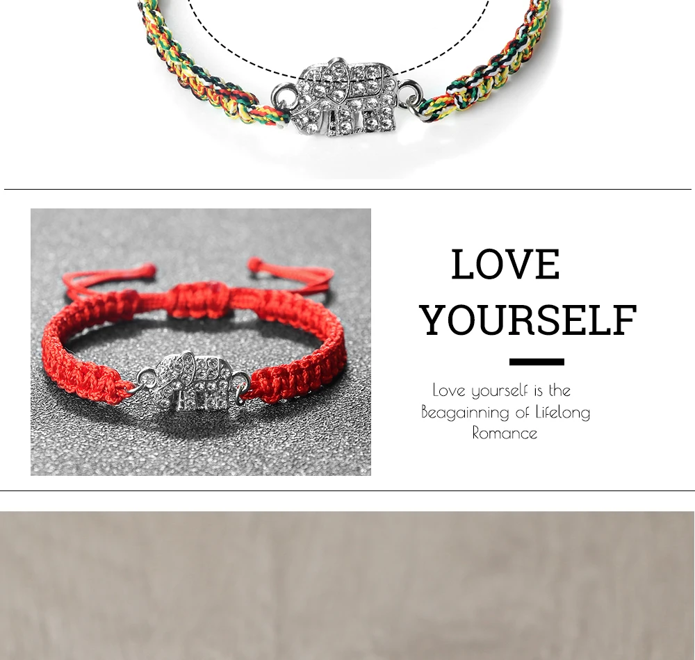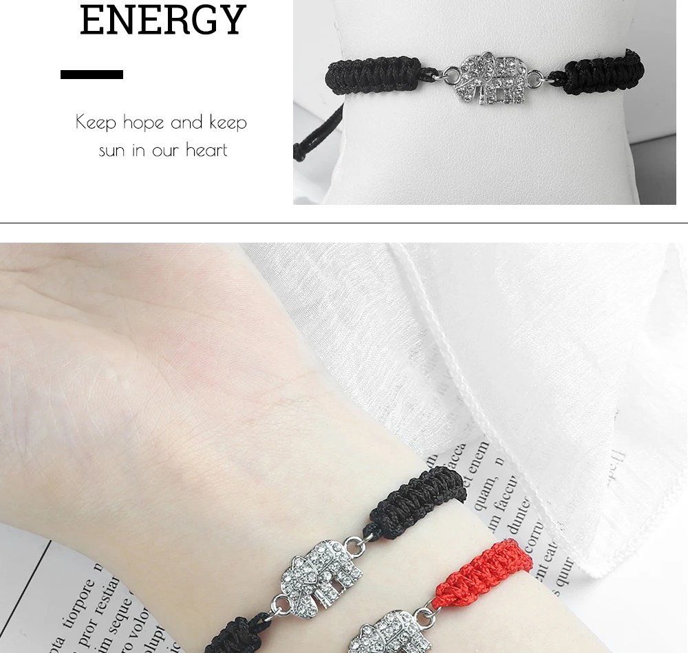 Cute Crystal Elephant Pendant Bracelet Women Men Handmade Couple Chain High Quality Jewelry Gift for Friend
