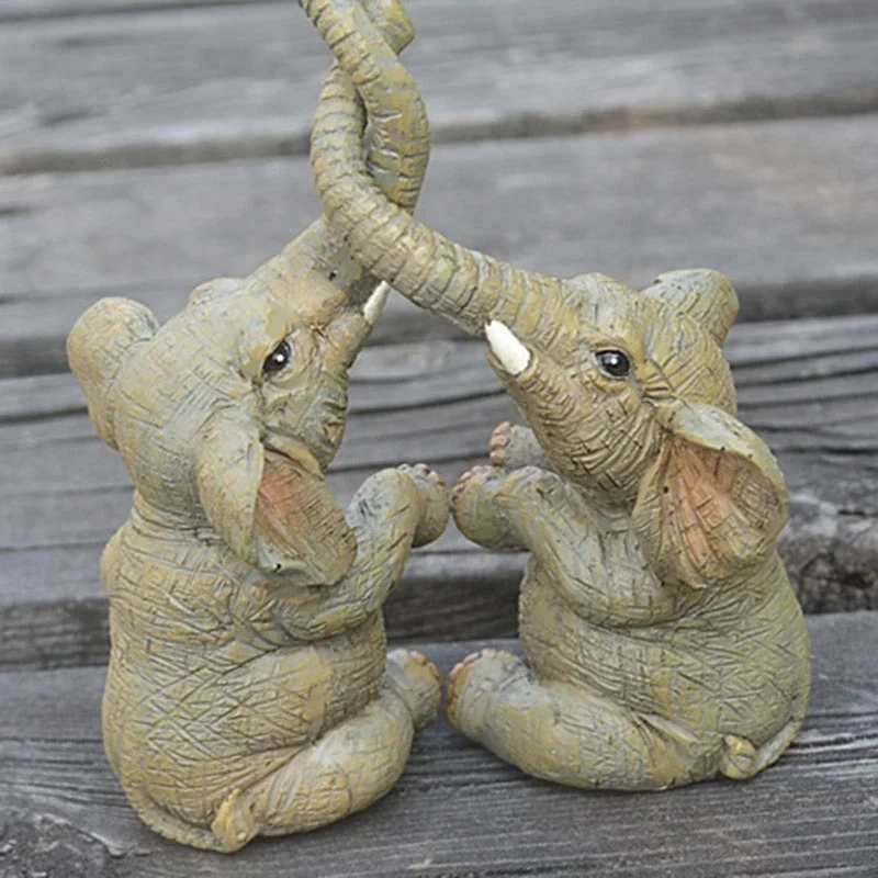 Elephant Couple Figurine Elephant Couple Statue Elephant Ornaments For Home Deskpot Cupboard Props Decor Accessories