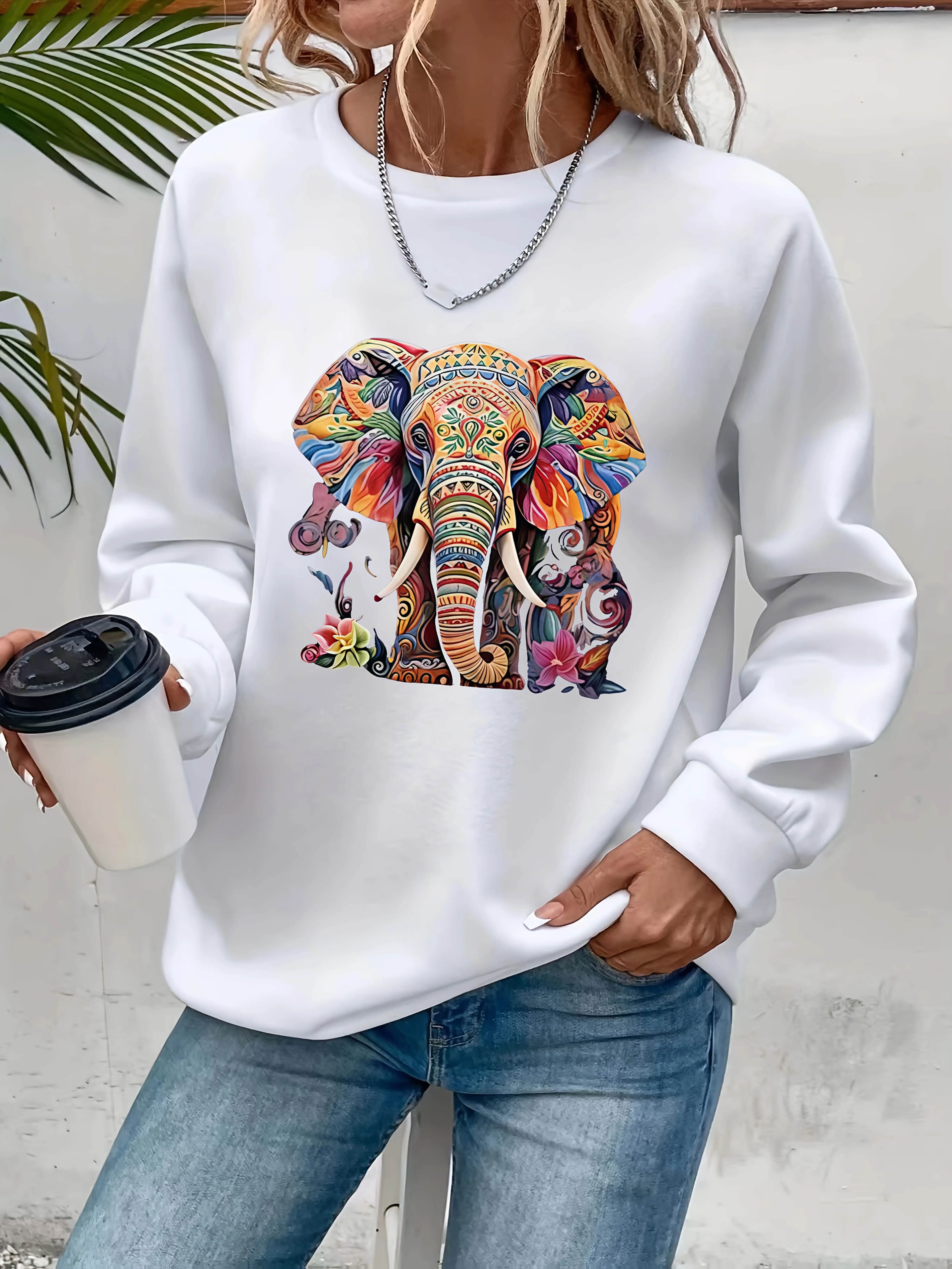 Elephant Graphic Print Autumn and Winter Cotton Men's and Women's Sweatshirts Outdoor Sports Fashion Trend