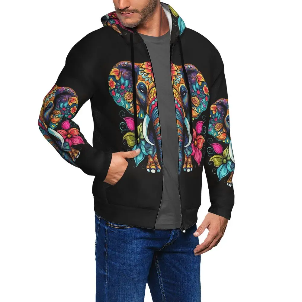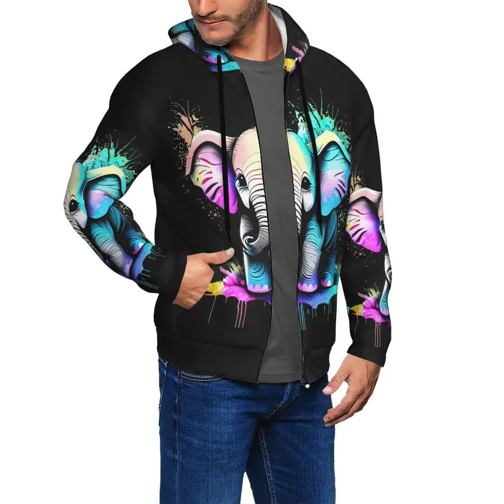 Elephant Valentine Zipper Hoodie Pullover Autumn Winter Men Women Sweatshirts Long Sleeve Tops