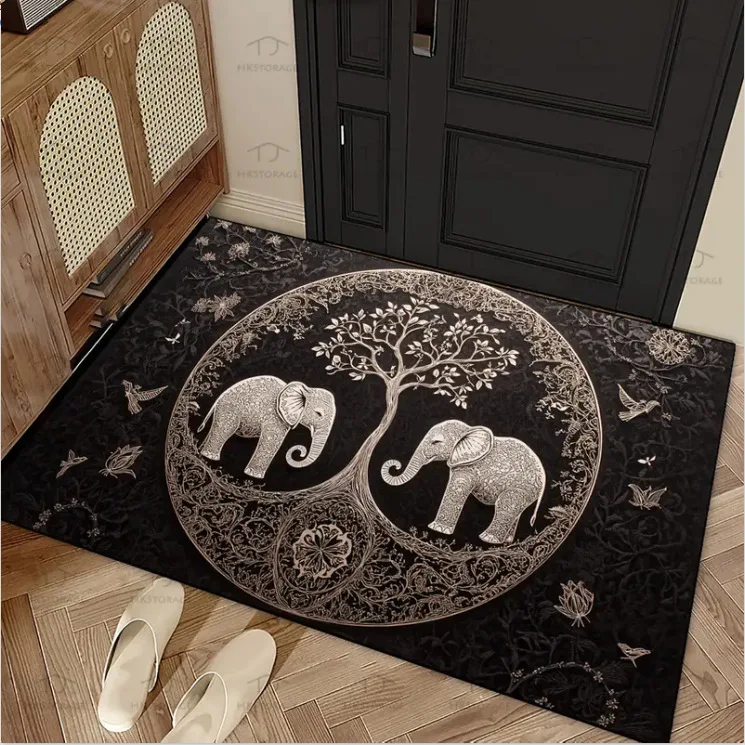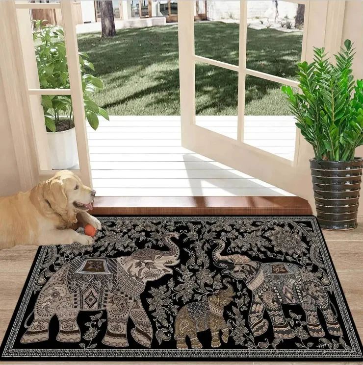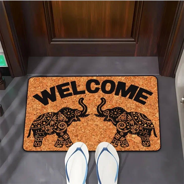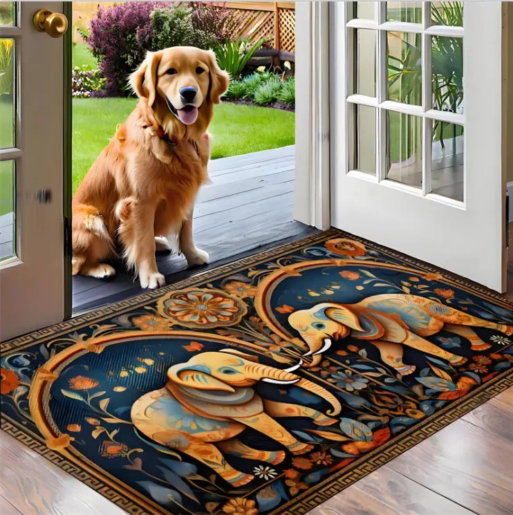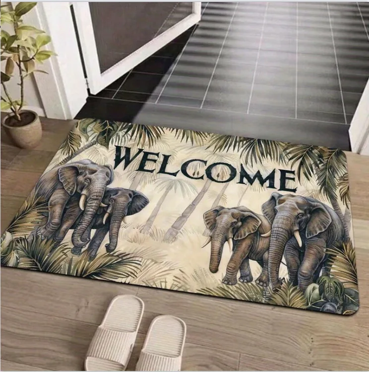 Elephant Welcome Tropical Oriental Pattern Door Mat Non-slip Carpet Rug for Entryway Door Home Decoration Home Doormat