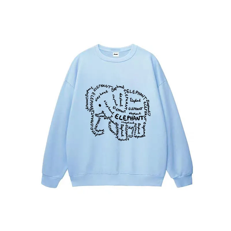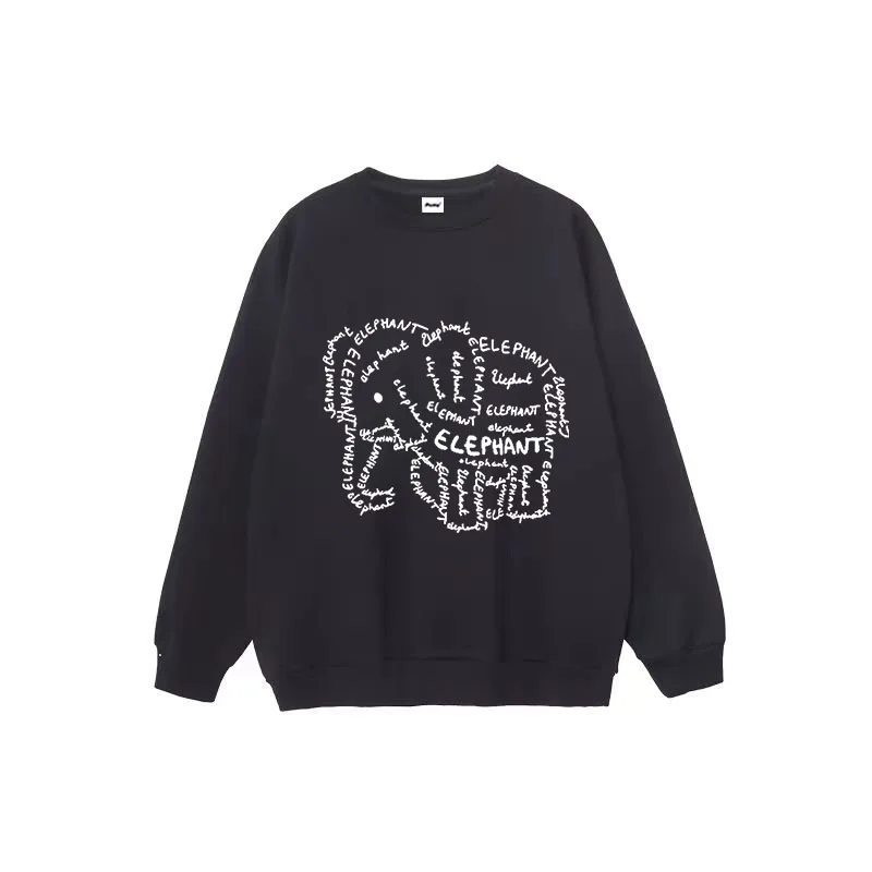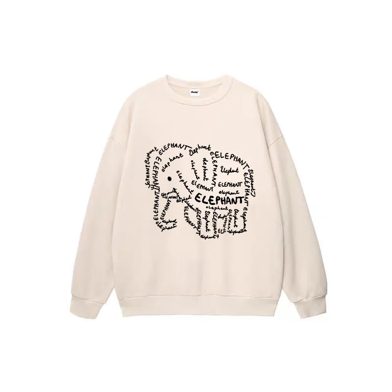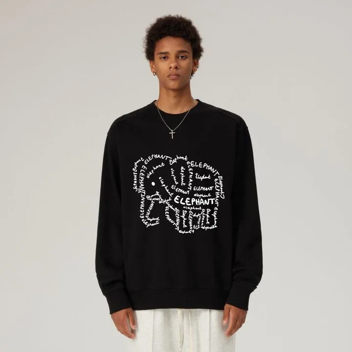 Hip Hop Crew Neck Vintage Elephant Graphic Clothes Cotton Casual Loose Pullover