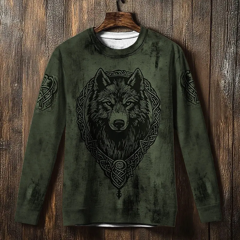 Men's Sweatshirt Crew Neck Wolf Print Casual Vintage Fall Winter Clothing Hoodies Sweatshirts Long Sleeve