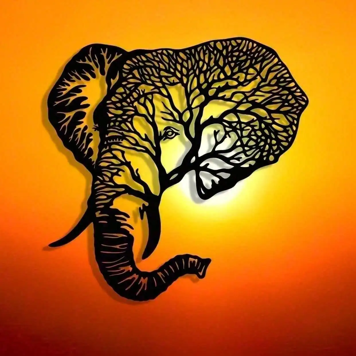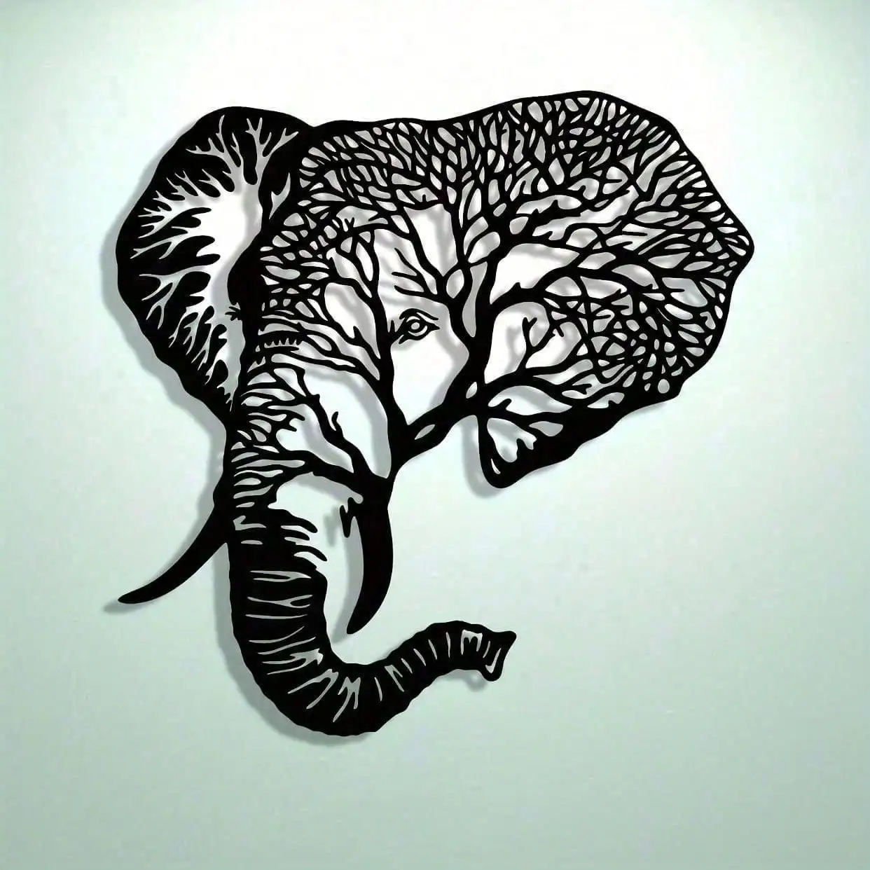 Metal Elephant Wall Art,Laser-Cut Abstract Wall Decor,Modern Geometric Metal Panel,Farmhouse Decor Gift,Reusable Home Decoration