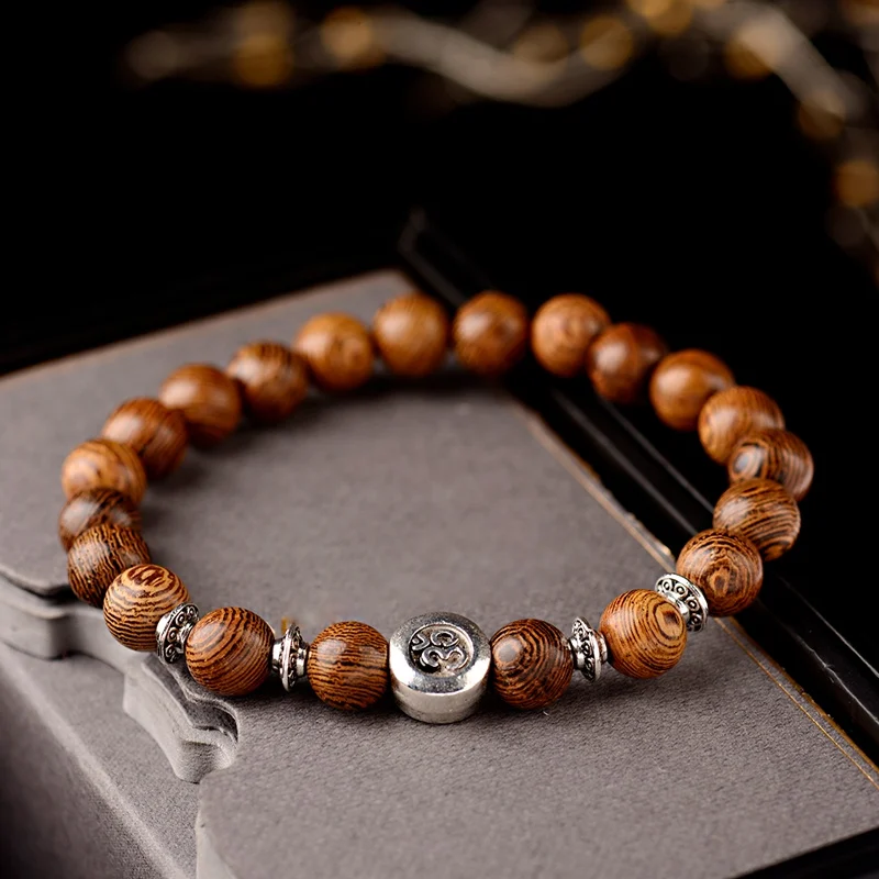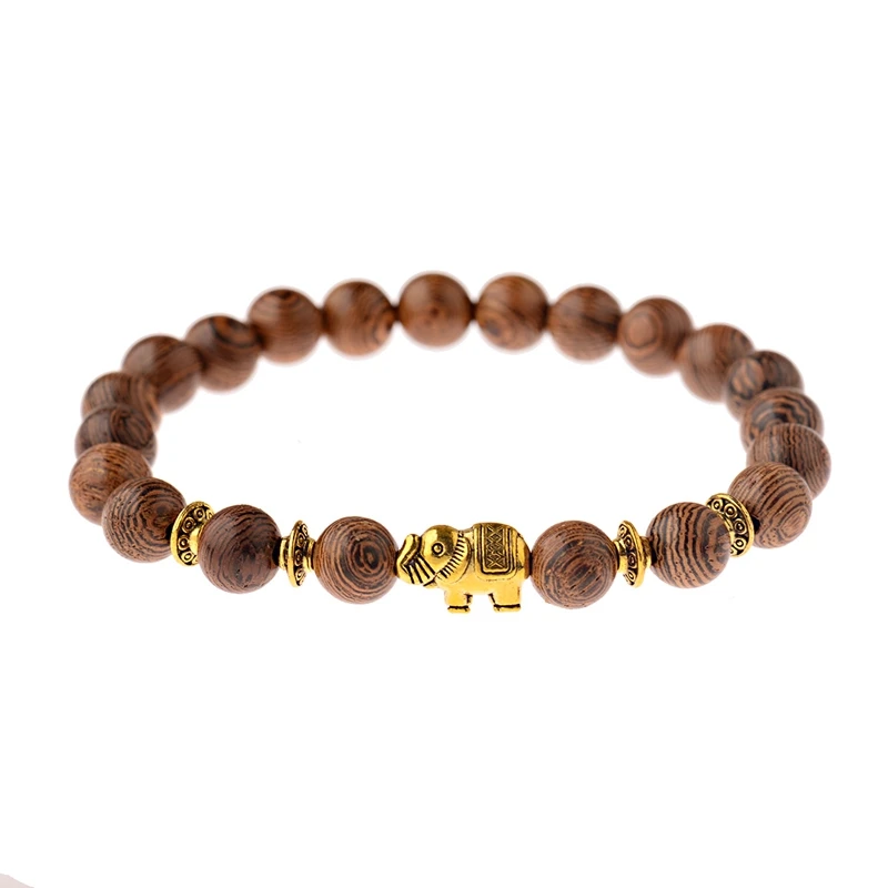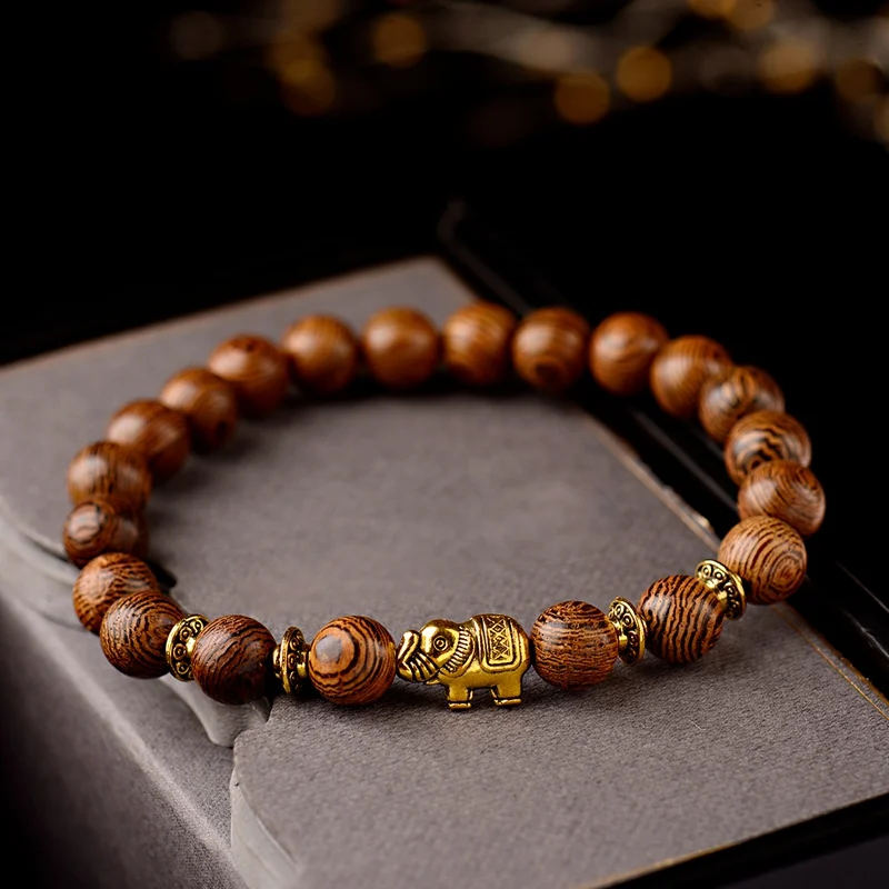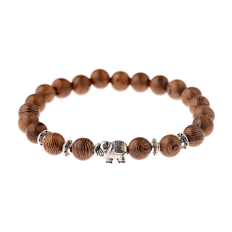 Natural Wood Beads Bracelets Charm Homme Ethinc Tibetan Buddha Elephant Bracelet Women Prayer Jewelry Yoga Bracelet