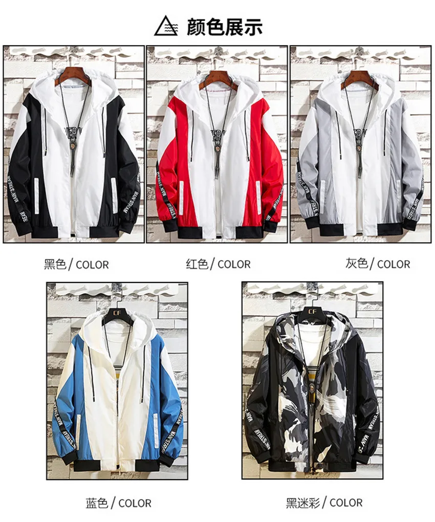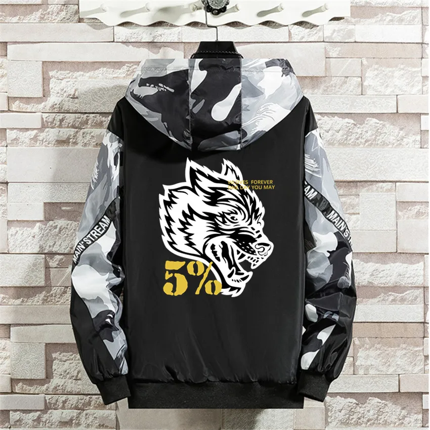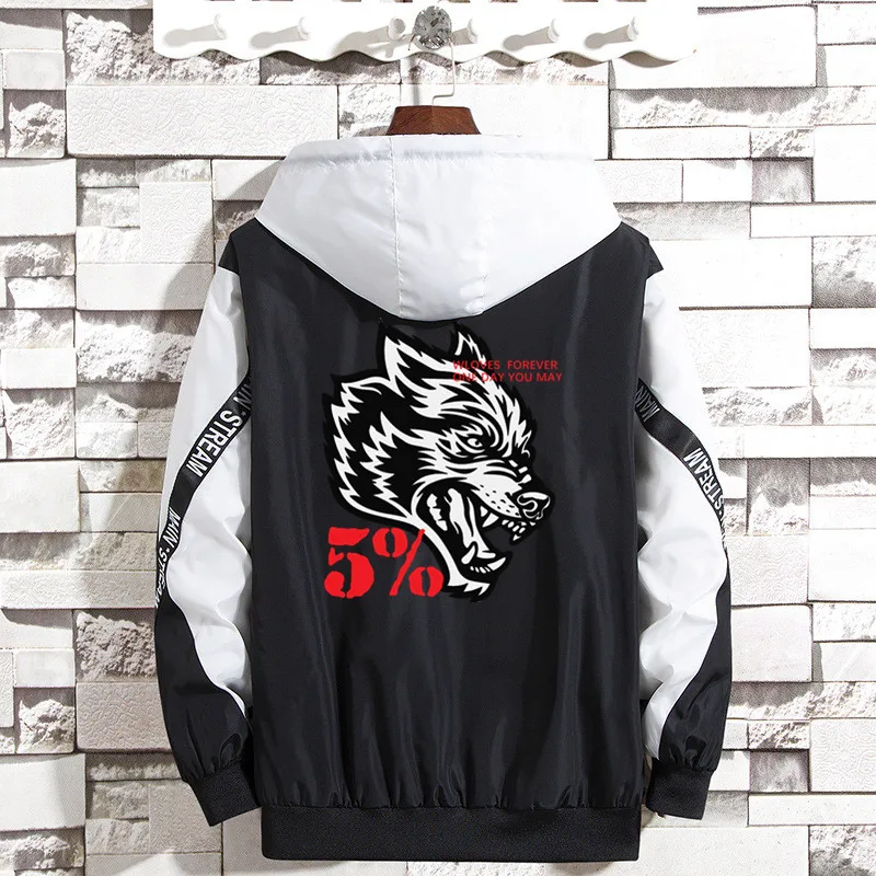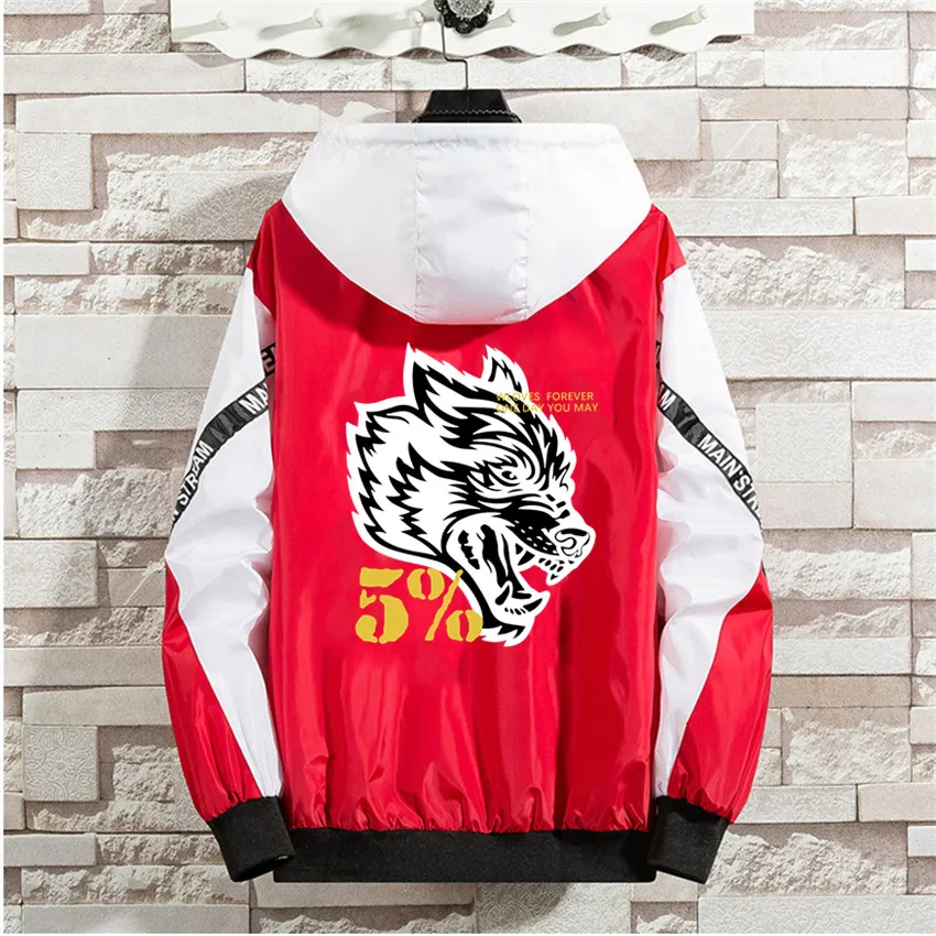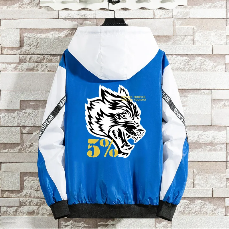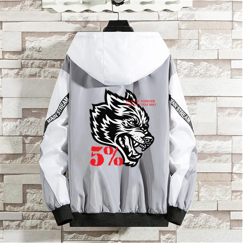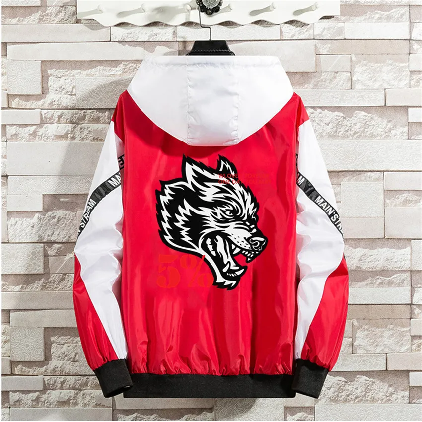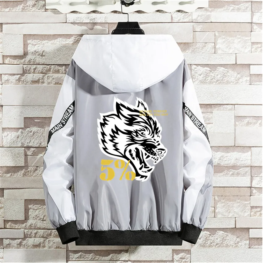 New Jackets Men Hip-hop Wolf head Printed Fashion Windbreaker Patchwork Jacket Mens clothing Loose Coat Harajuku Male
