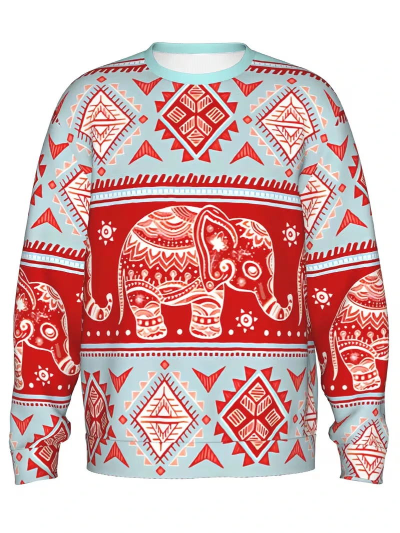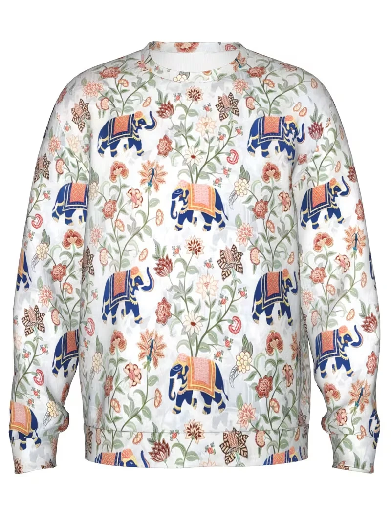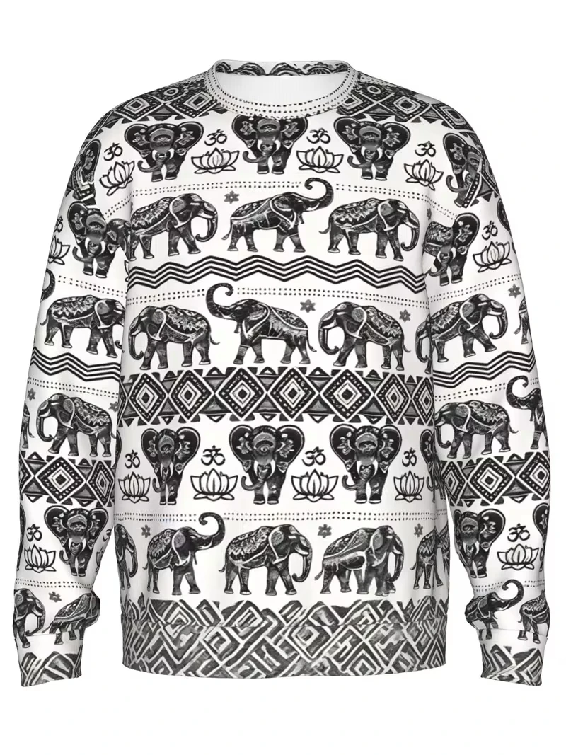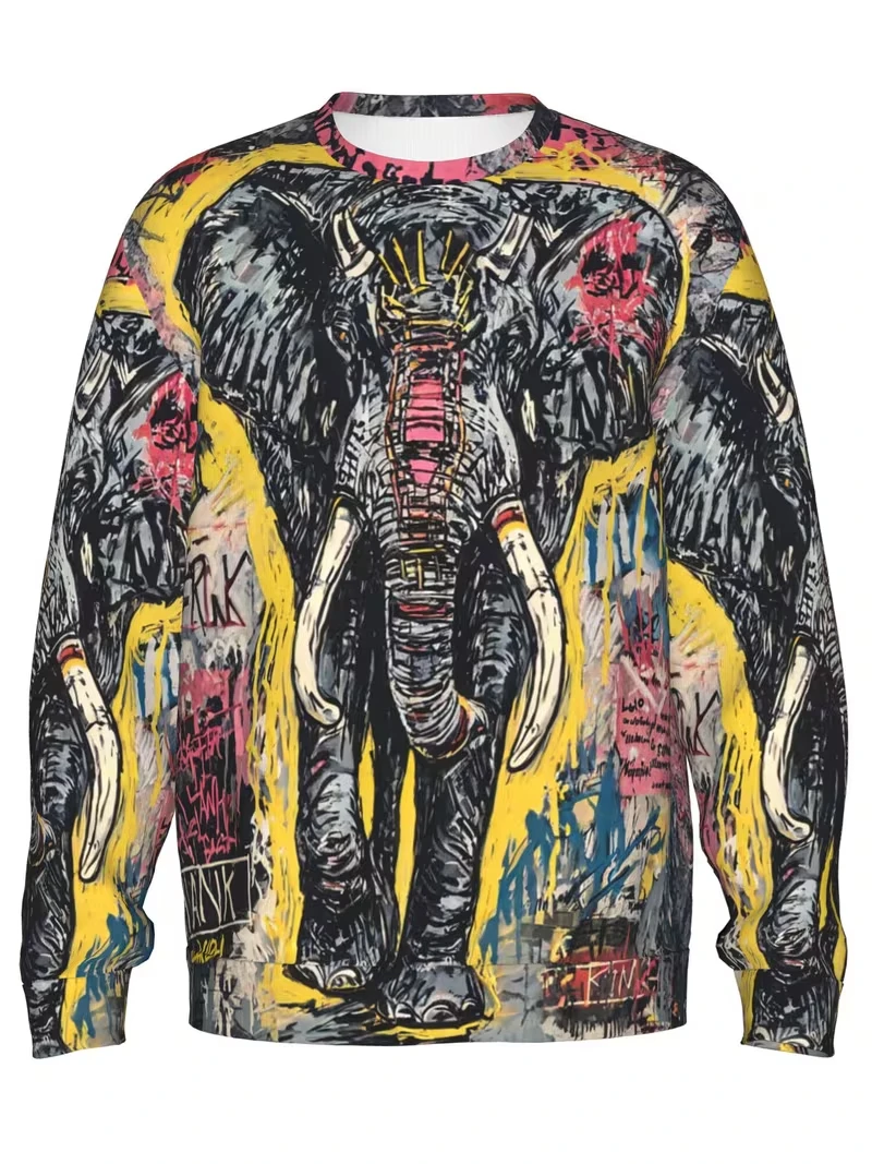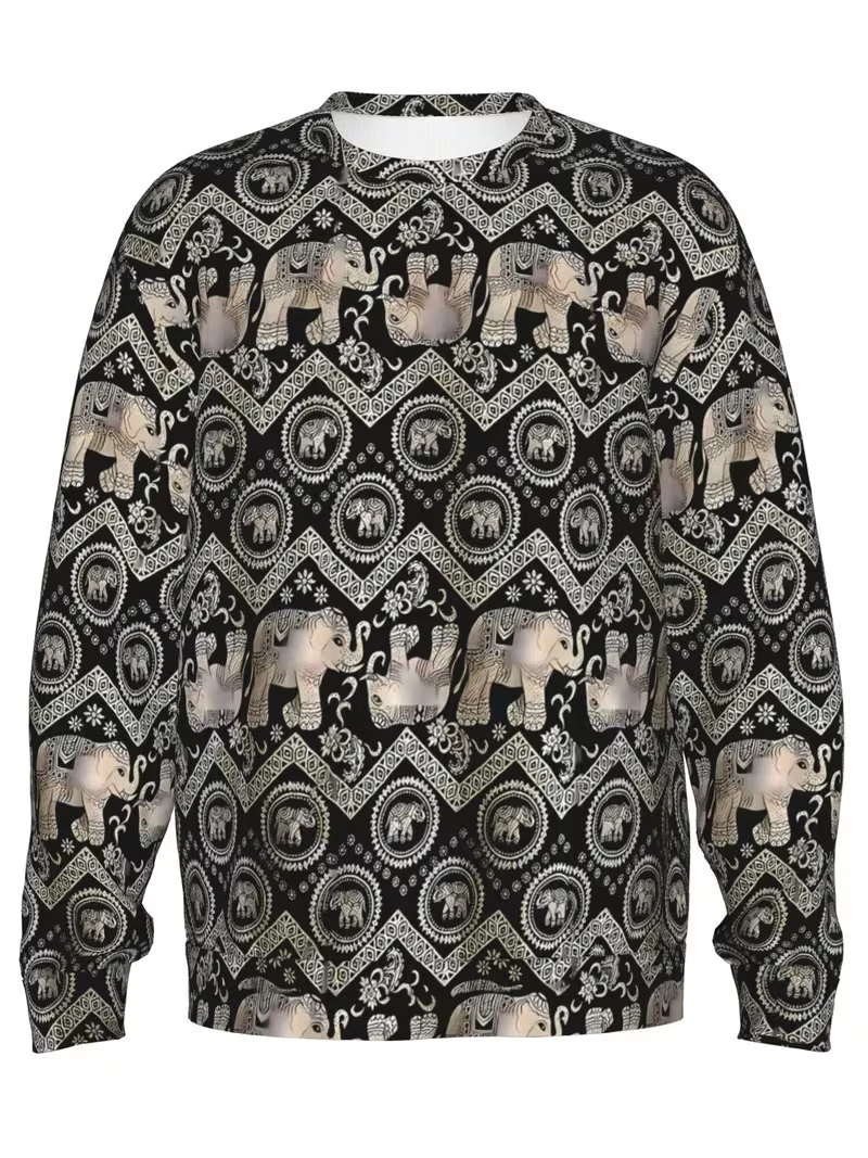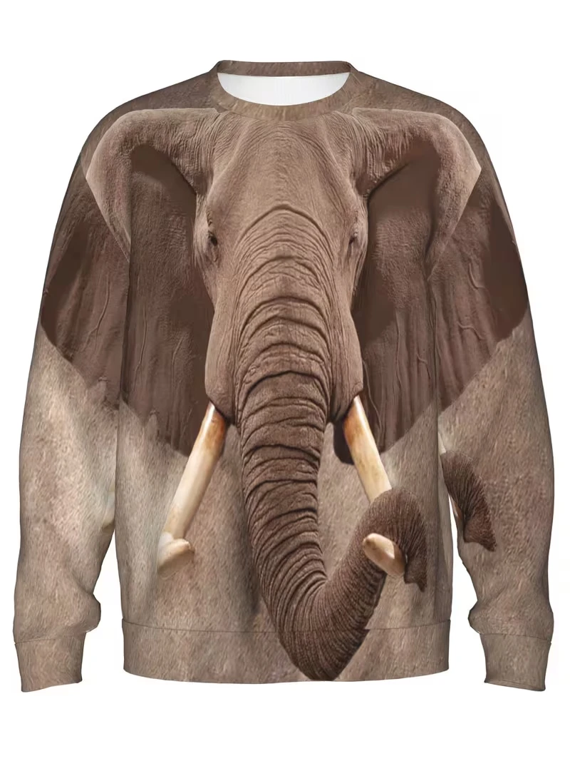 New Retro Elephant Graphic Pullover Tops Fashion Crew Neck 3D Printed Spring Fall Sweatshirts Loose Streetwear Pullovers