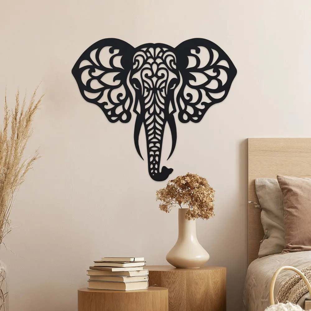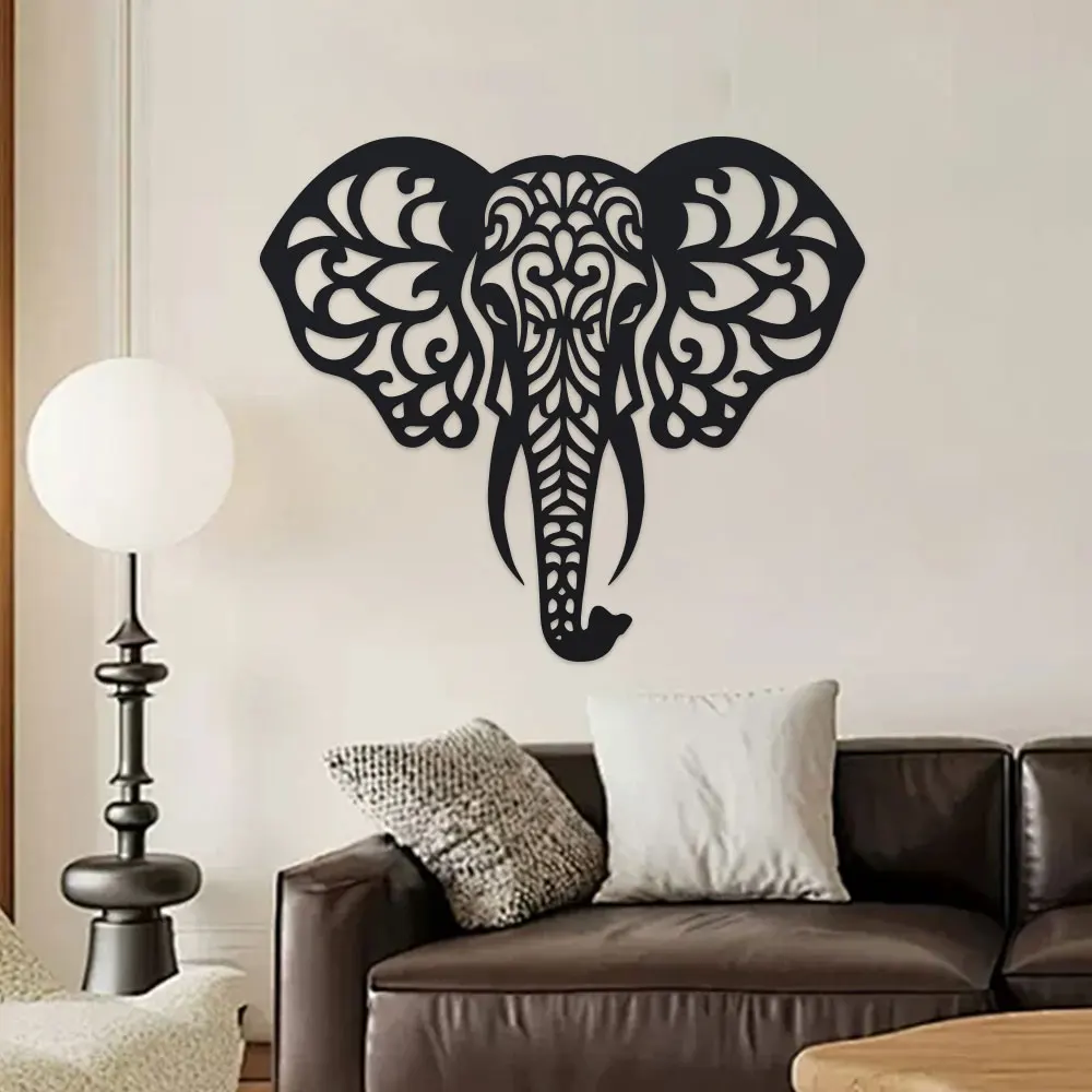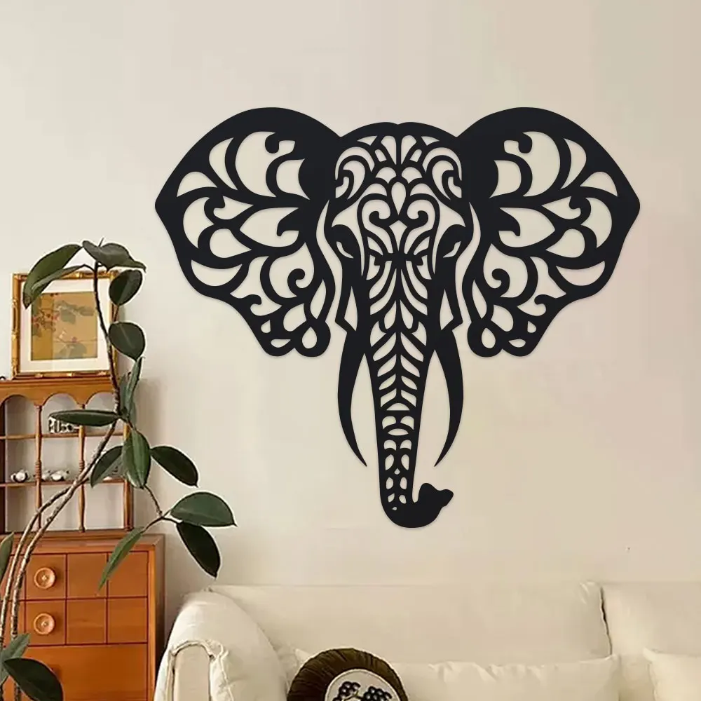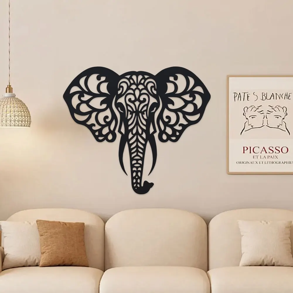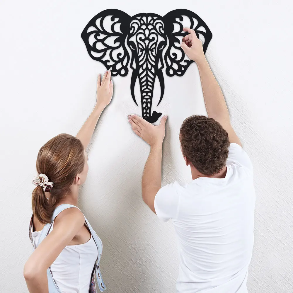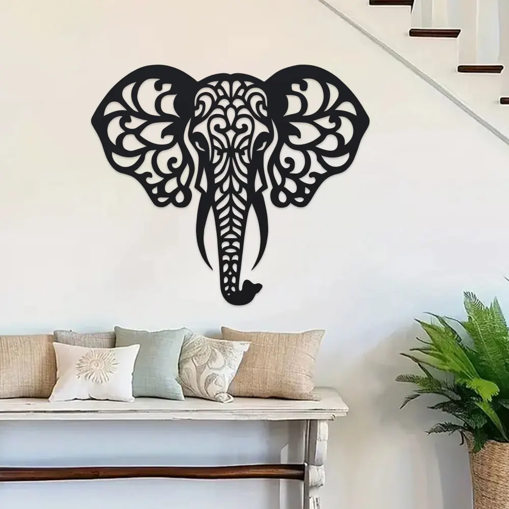 Room Decor 1pc Elegant Minimalist Elephant Metal Wall Art, Intricate Hollow-Out Iron Craft Sign, Versatile Decor for Office, Home, Patio, Kitchen, Garden, Shop, Cafe, Ballroom, Bar, Farmhouse, Housewarming, Holiday, Birthday Gift, Removable & Reusable for Animal Lovers