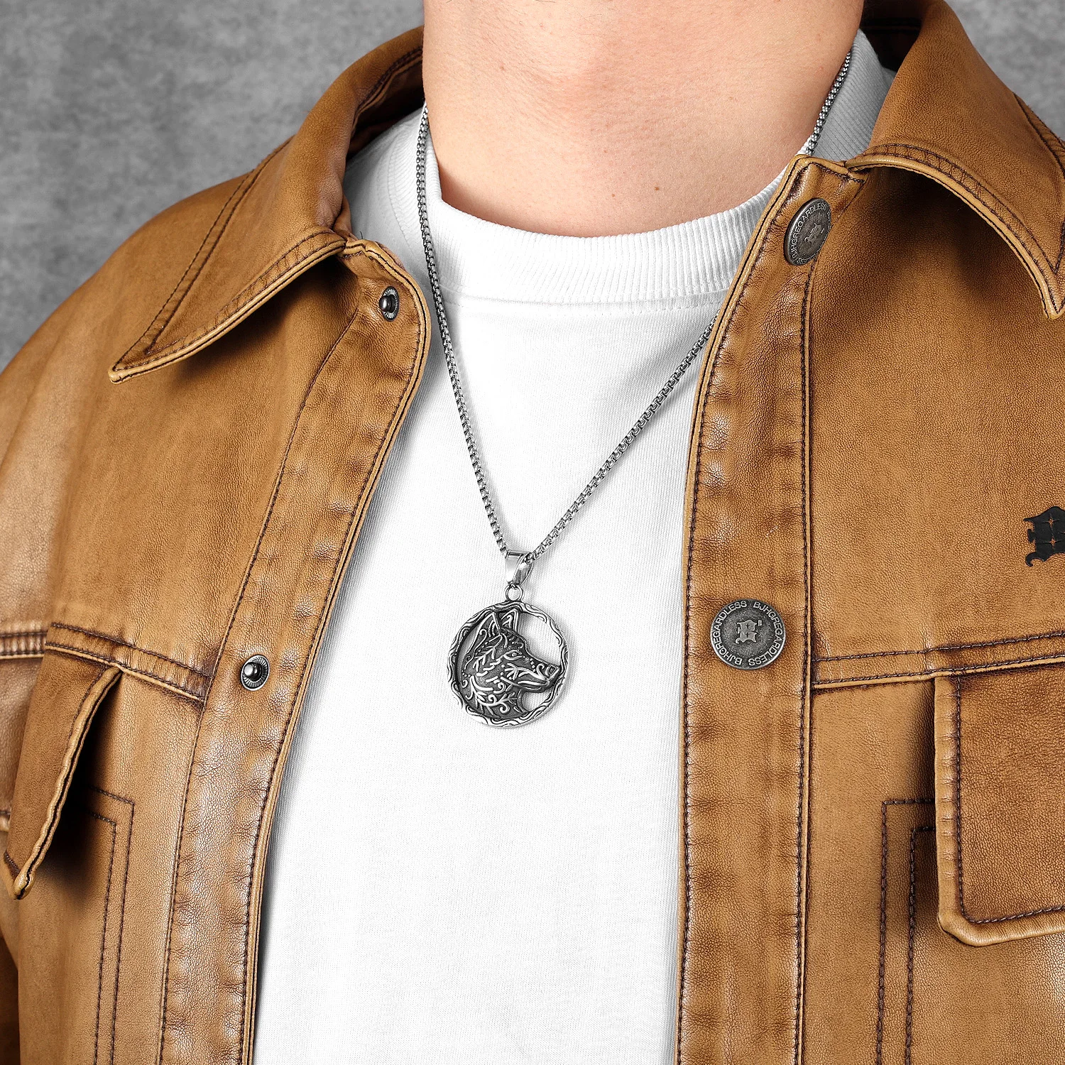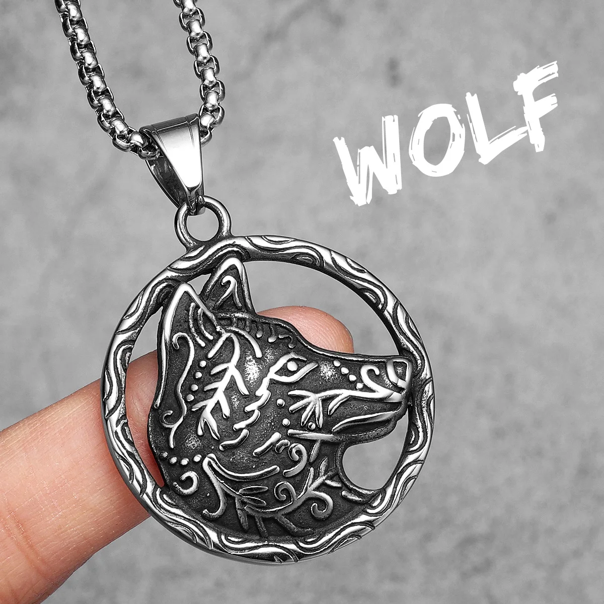 Wolf Head Carving Men Necklaces With Pendant Stainless Steel Jewelry For Male Women Punk Hip Hop Accessories Gifts Wholesale