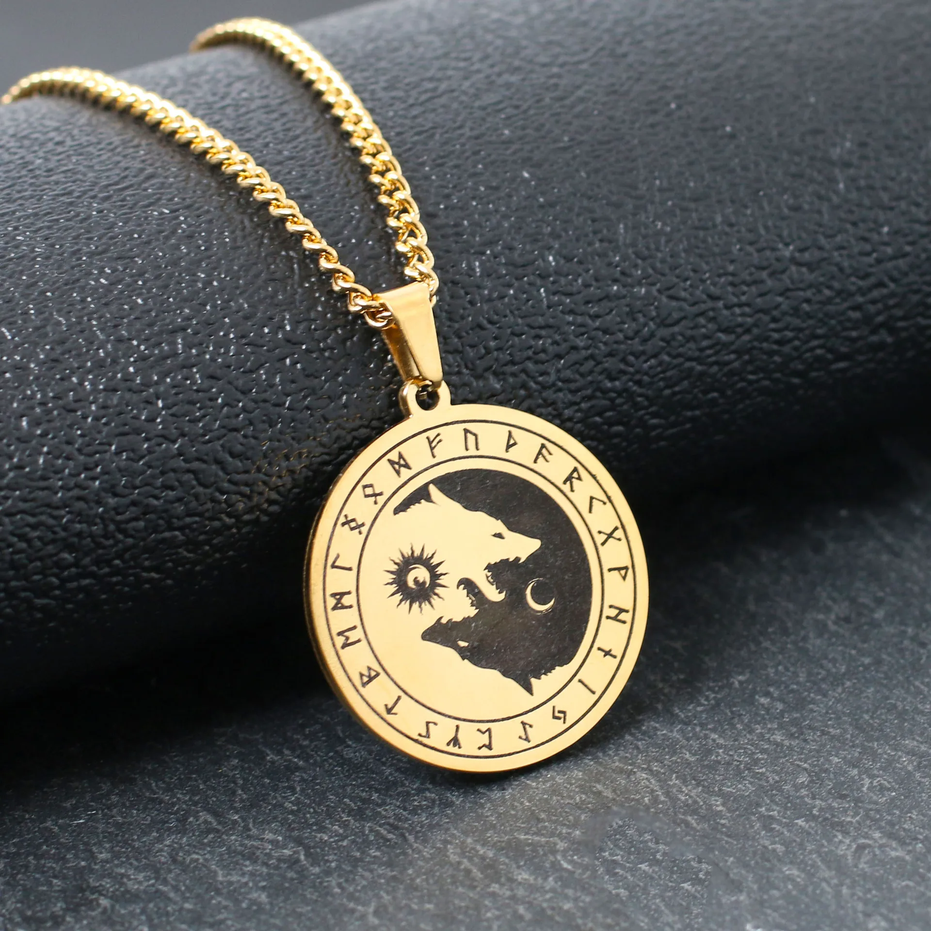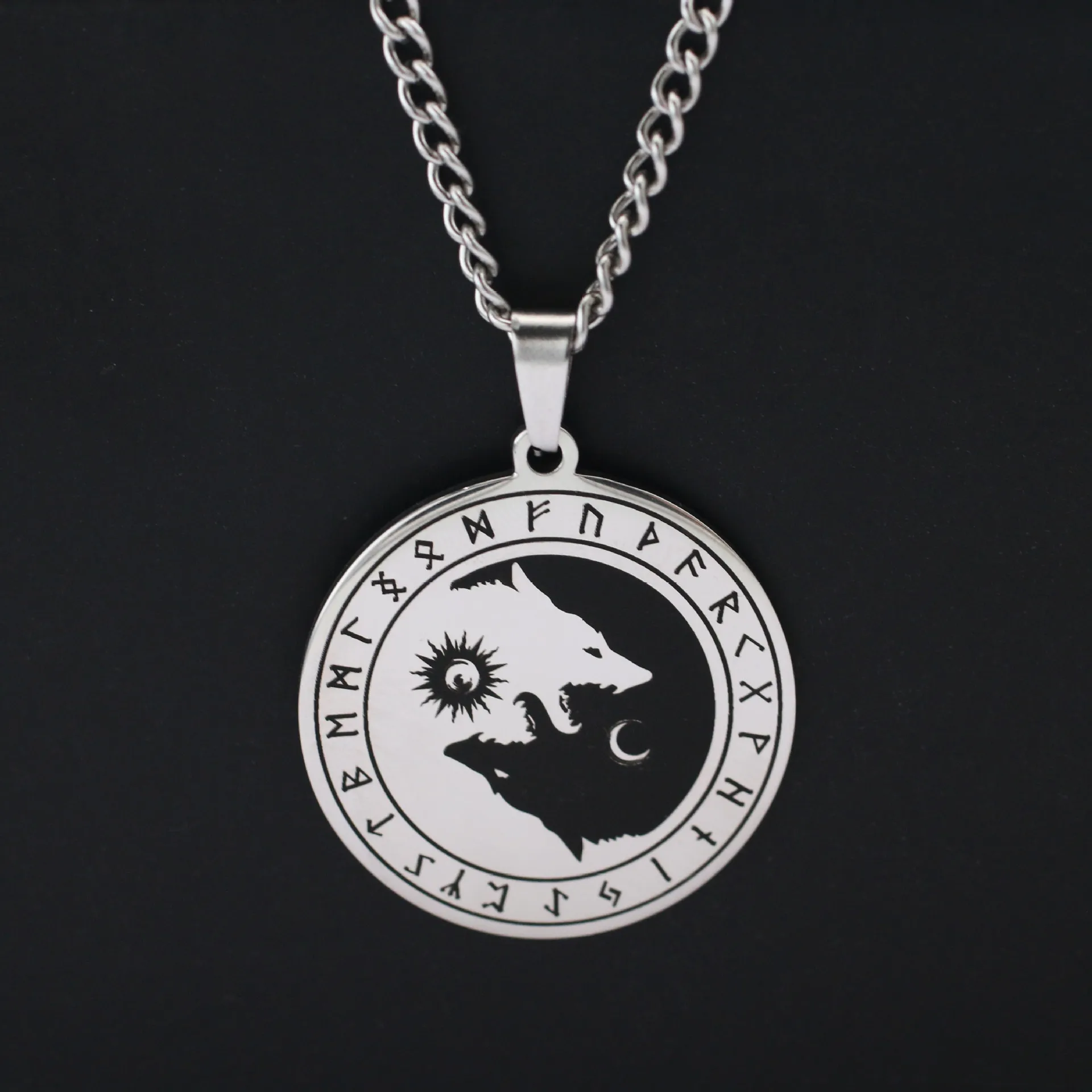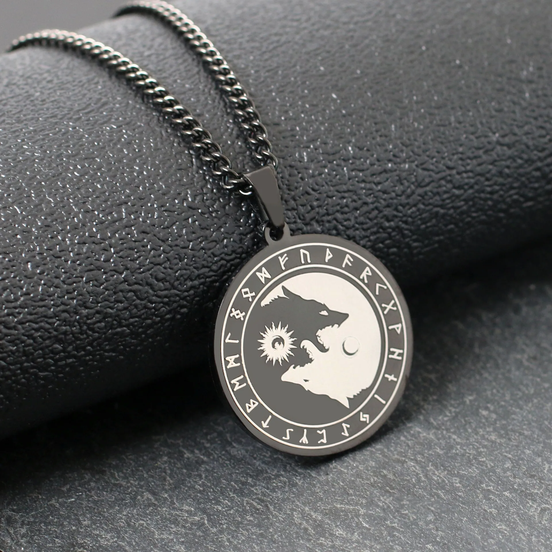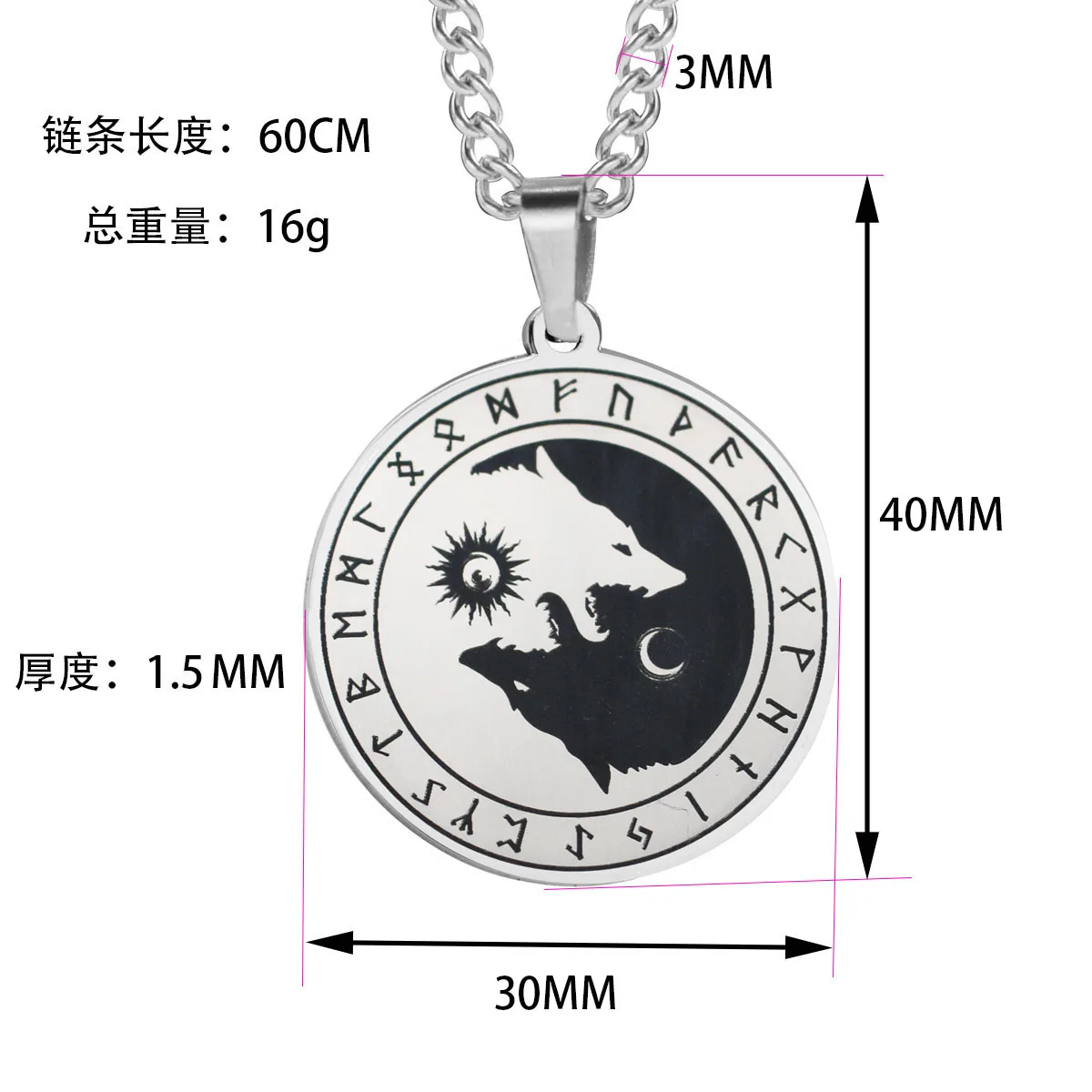Wolf Sun Moon Pendant Stainless Steel Norse Vikings Pendant Necklace Viking Amulet